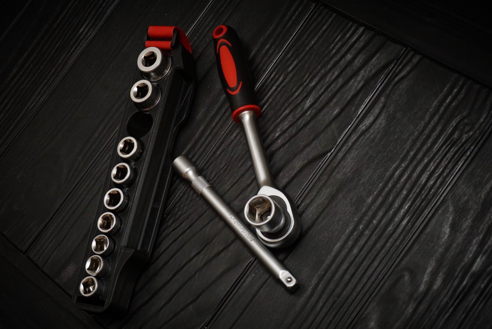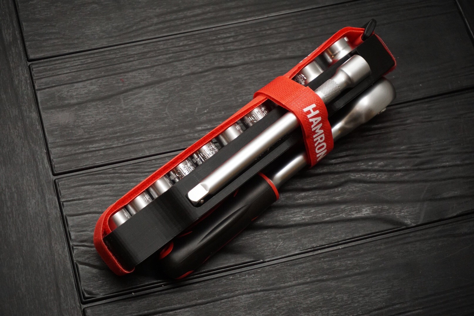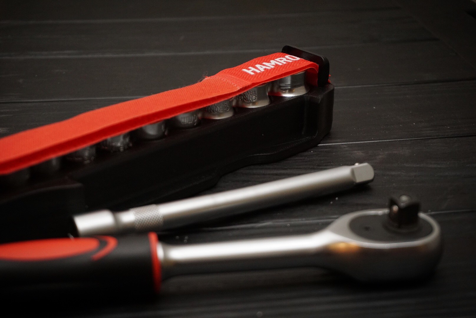 10h utskrift i min 3D skrivare. En universell hylsnyckelhållare med plats för förlängare och spärrskaft. Tänkt att ha i skotern eller ATV eller i bilen. Ja egentligen överallt där plats är viktigt. För denna sats är ganska så kompakt. Också kan man byta hylsa med bara 1 hand. Open source har inte hunnit ladda upp den på thingiverse ännu bara.