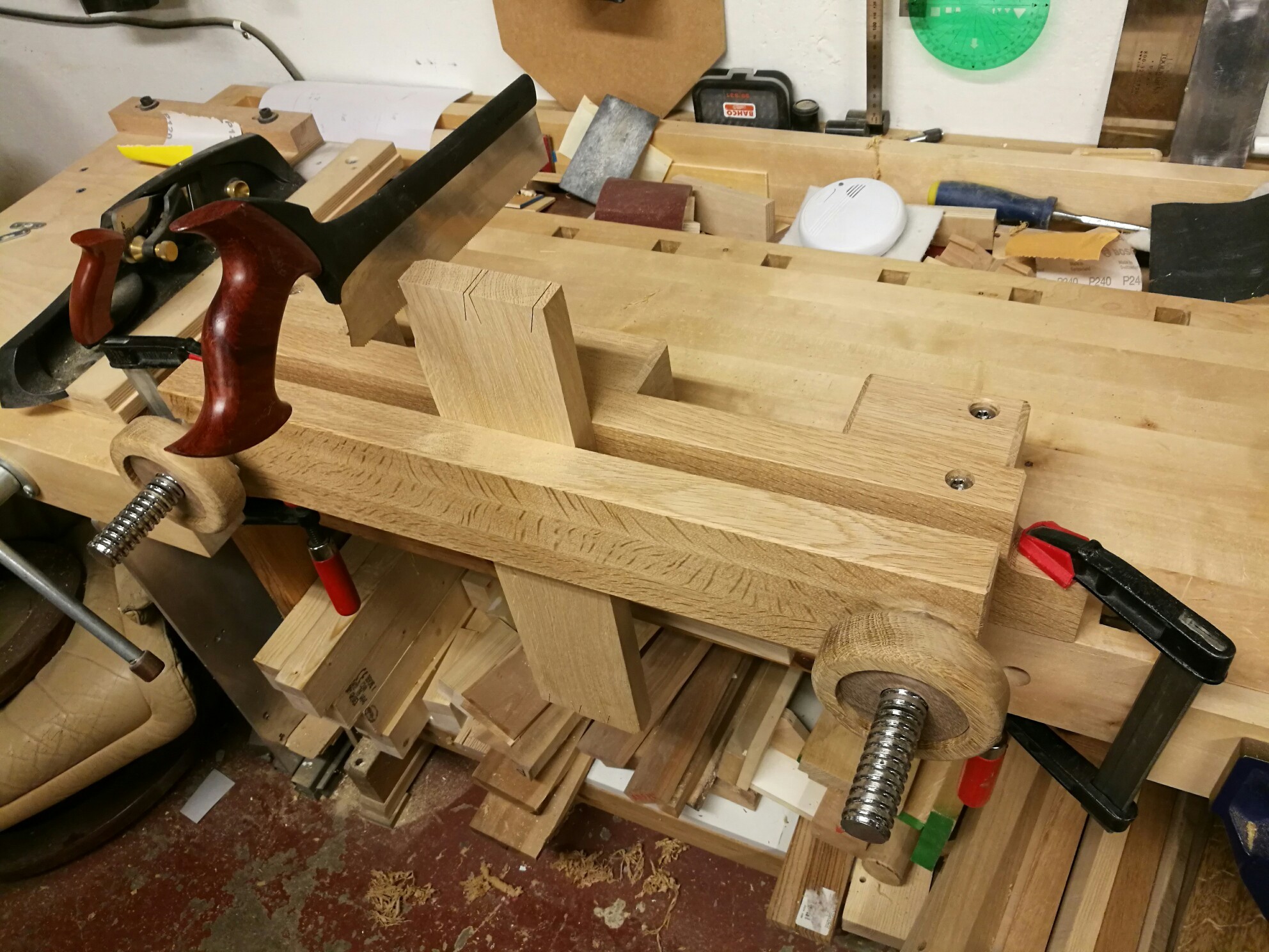 När man byggt en sån här är det av yttersta vikt att man lägger ut en bild där man sågar dovetails så det får jag väl göra.