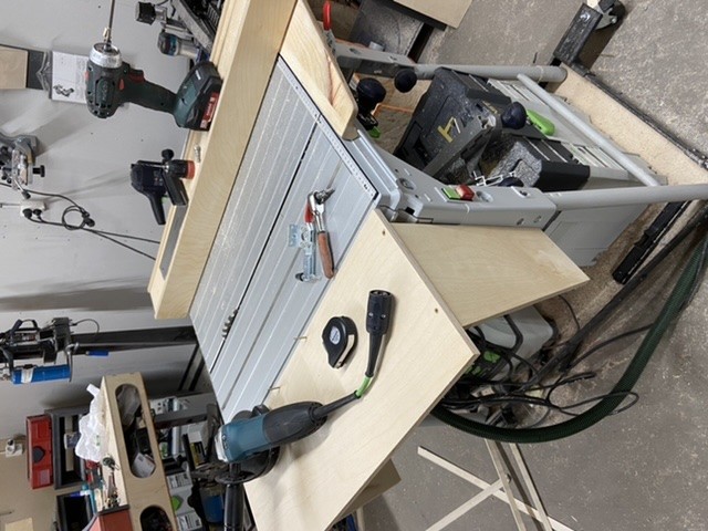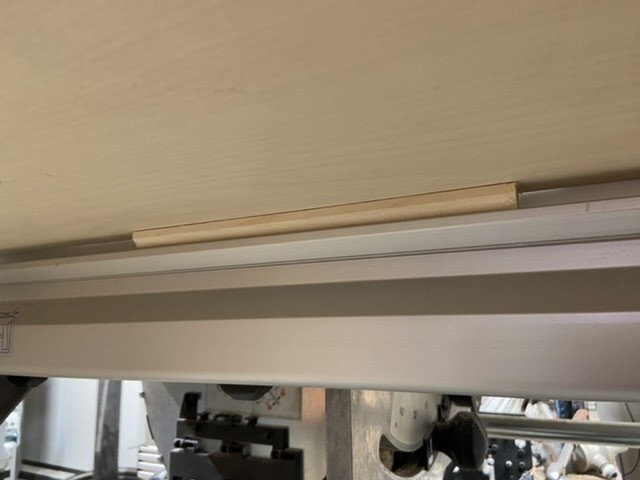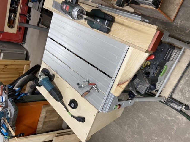 Färdigställde mitt kapanhåll till cs70 samt började med vingar till den. Ska banta ner trianglarna och runda hörnen på själva vingen samt göra en som outfeed också. Skivan får stöd av en Vprofil som löper i anhållet. Väldigt stadigt.