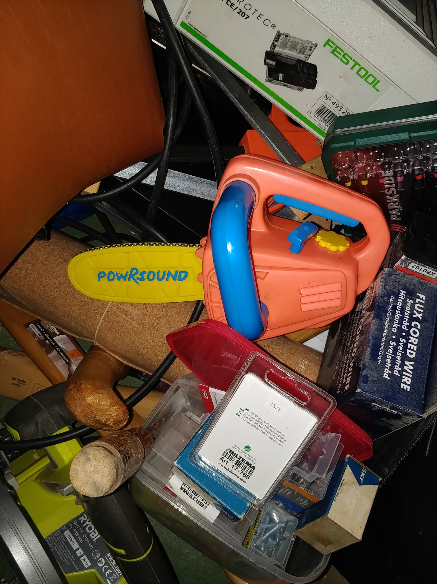 Visade sig att sonen tagit efter fadern. Hittade hans motorsåg inställd bland bröten.
