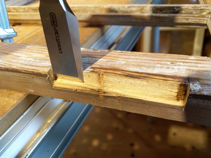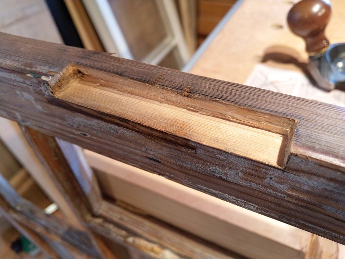 Efter borttagning av kitt, glas och färg på några gamla fönsterbågar är det nu dags för se över trät.