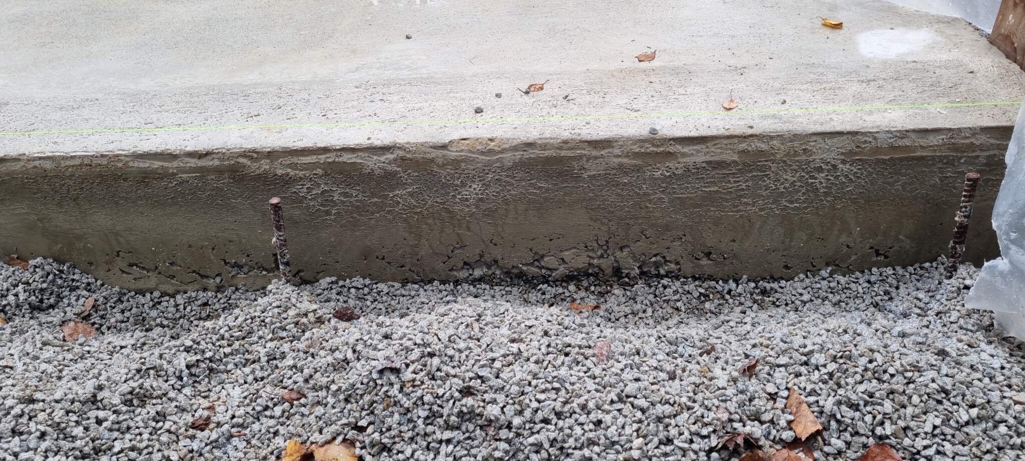 Det är en mindre byggnad jämte lösdriften som ska innehålla sadelkammare och plats för hovslagaren att arbeta varannan månad. Möjligtvis sjukboxar om det behövs. Jag angav det för leverantören och det här var betongen jag fick.