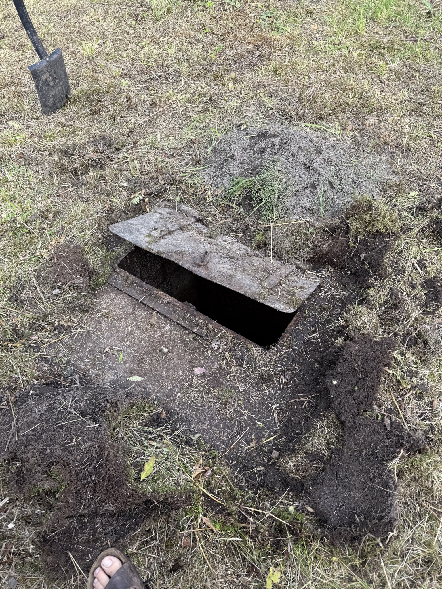 Nyss inflyttad i 20-talsvilla i Stockholmsområdet. Hittade av en slump någon form av brunn gömd under jord och mossa i trädgården i en del som varit helt övervuxen. Sönderrostad lucka så fick bändas upp. Luktar inte avlopp. Kanske 1,5 meter djup. Verkar vara omkring 15 cm lerig sörja i botten, som känns hård under detta. Denna del av trädgården ligger ungefär på gatunivå vilket är några meter under huset inkl under källaren.