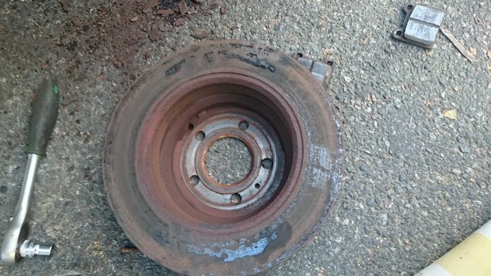 Sen när man tar ner skivorna så är hela beläggningen borta på insidan, specifikt på bakbromsar då man knappt bromsar så hårt så de tar där bak.
