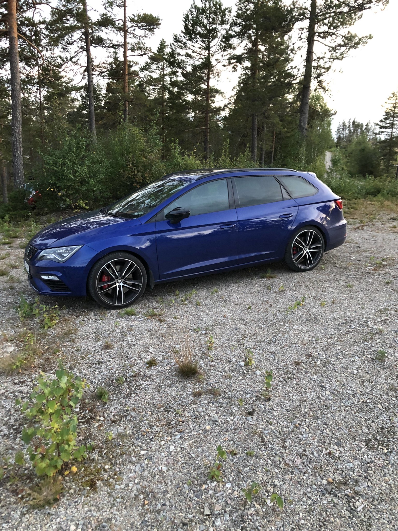 En 2018 Seat Leon Cupra 300 4drive. Fullutrustad. Fruktansvärt rolig bil som hänger av de flesta vid rödljusen original. Nu är den optimerad och 0-100 på strax över 4 sekunder. Utöver det går bilen enormt bra att köra bana på