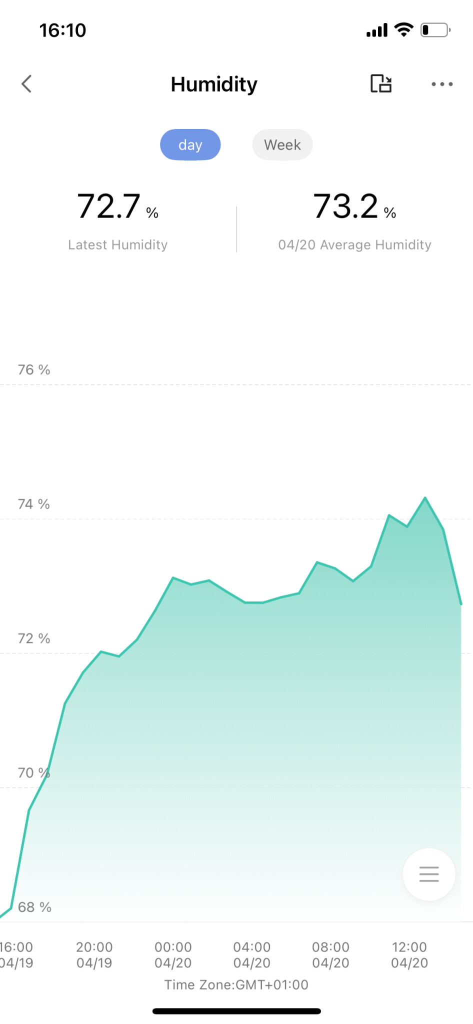 Har loggat nu i säkert över en månad och den har typ aldrig loggat över 70% i mer än någon timme eller två. Visserligen har det varit väldigt torrt ute de senaste veckorna. Men nu legat över 70%-gränsen i en hel dag, eller sedan inatt liksom.