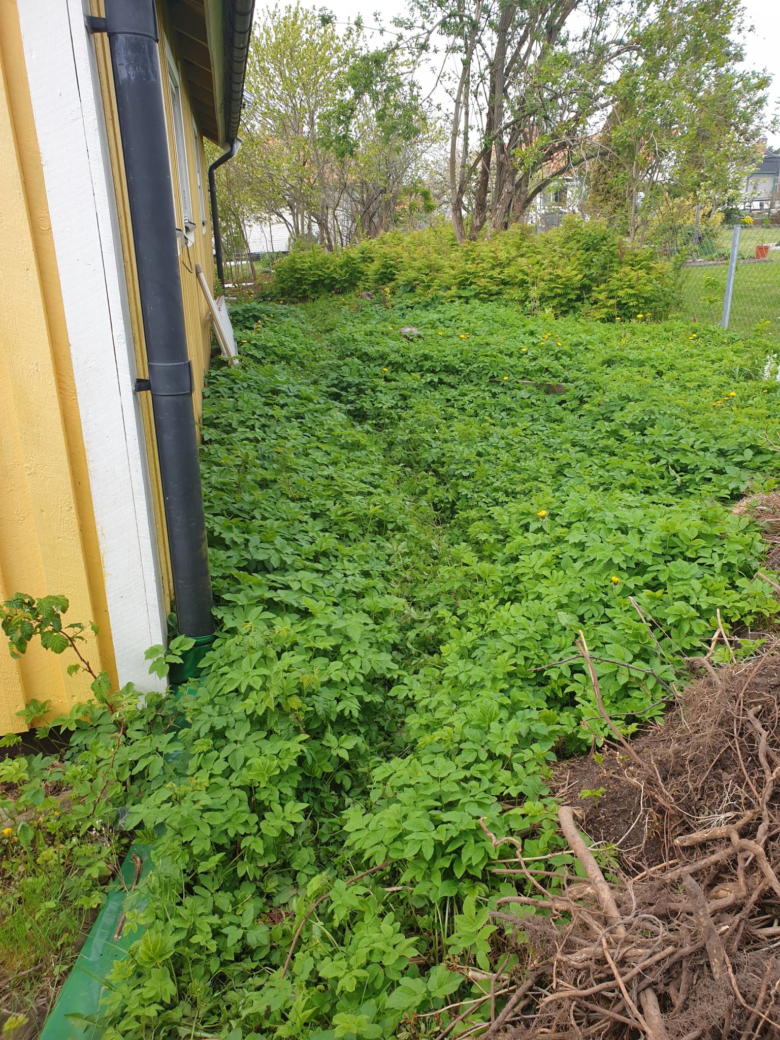 Inte nog med att jag har kirskålsodling på baksidan, de jäklarna dyker ju upp i samtliga rabatter också. Har ägnat en stund åt att rensa idag. Lärde mig förra året att man kan ligga steget före kirskålen och att det inte växer upp i riktigt samma utsträckning som man rensar.