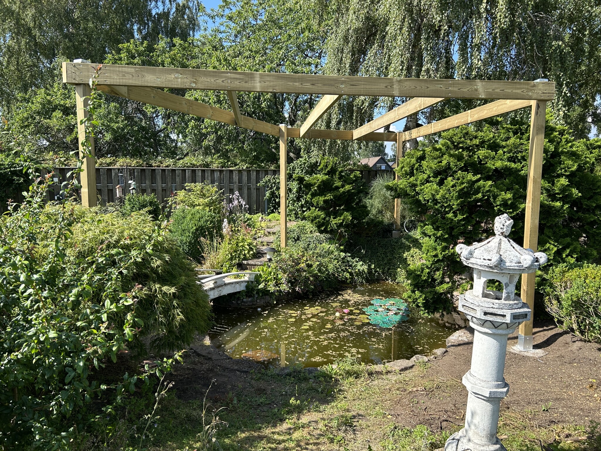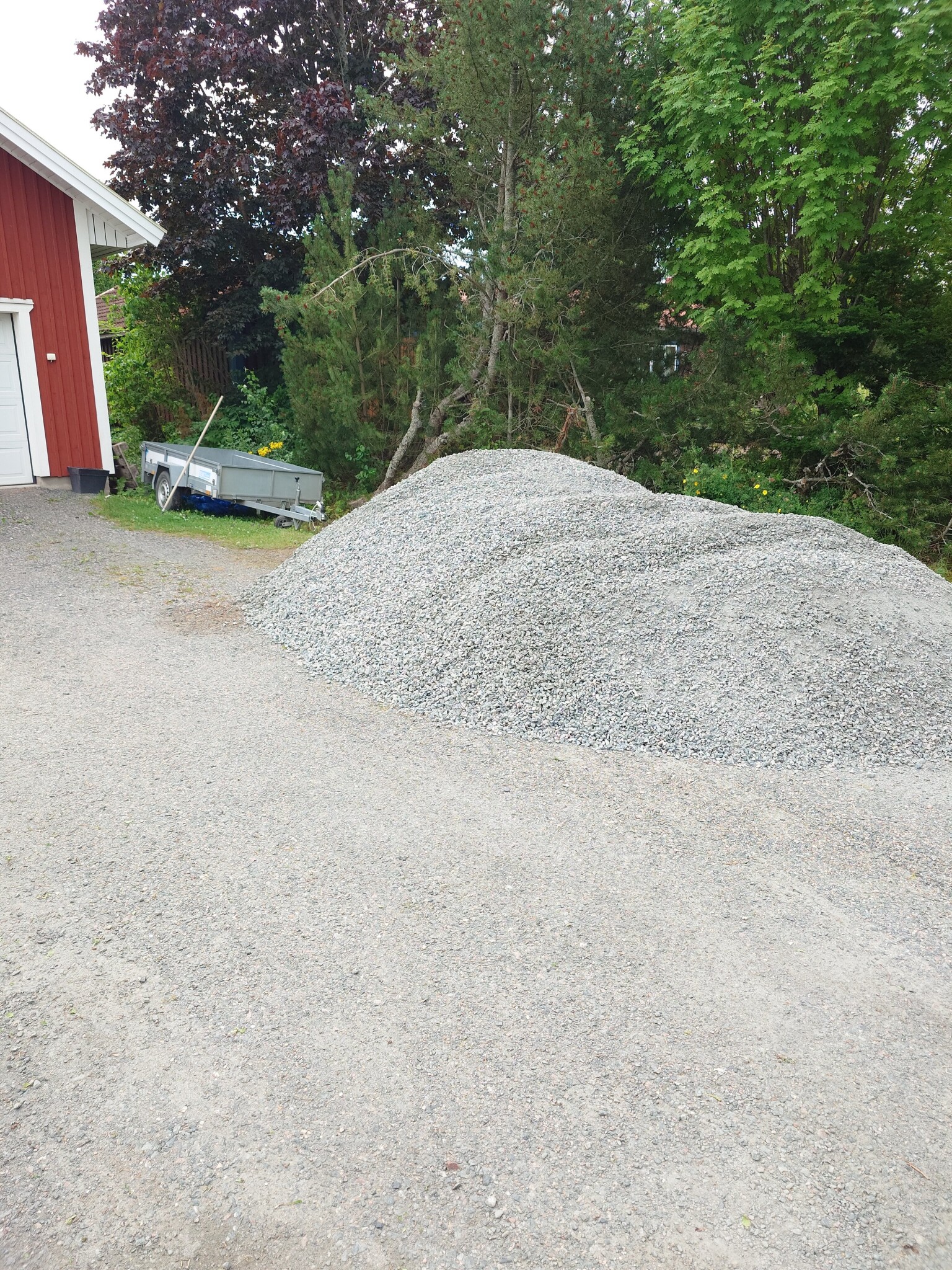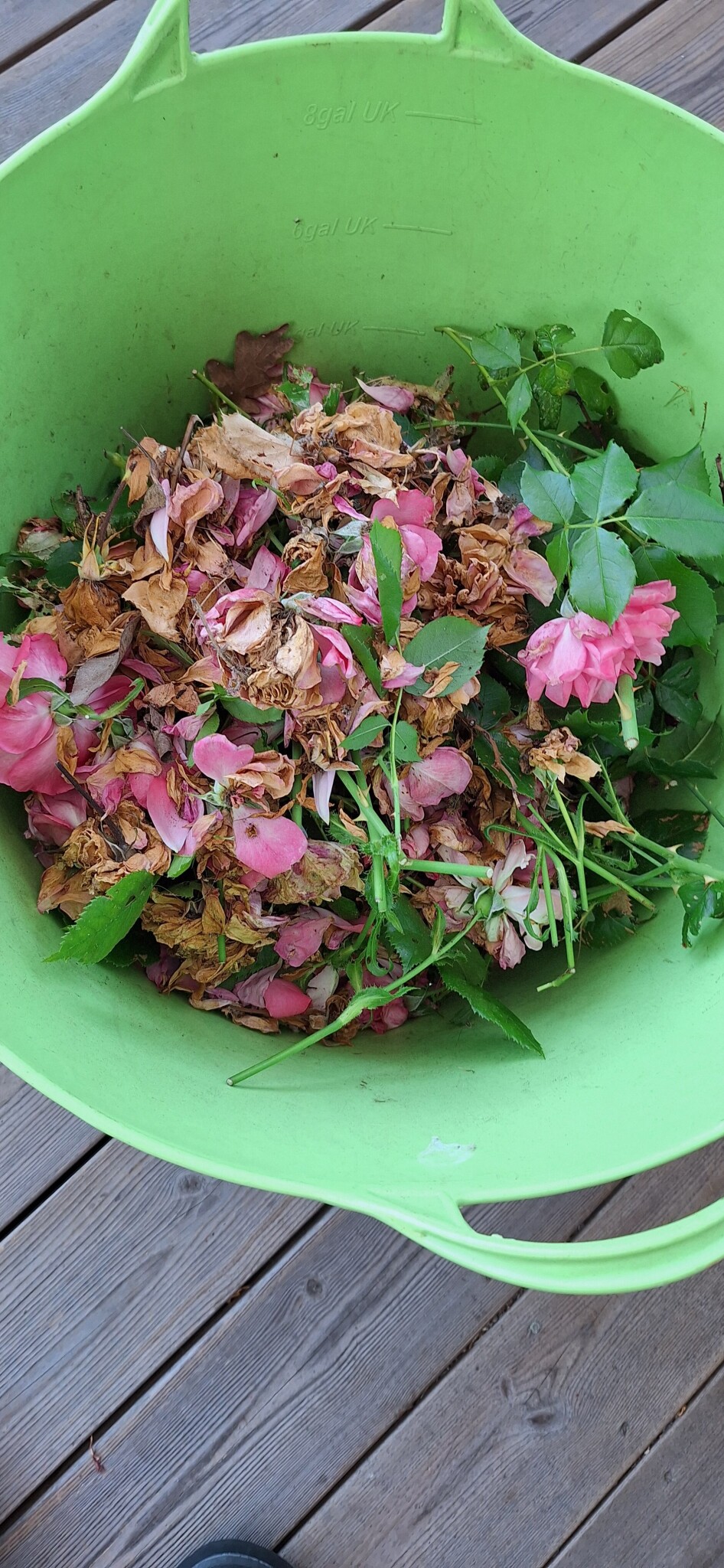 Jag lastade släpet med alla gamla grenar som samlats på hög eftersom de är för stora för kompostkvarnen. När jag lyfte en av de sista som hade en liten fläck av vad som ut som torrt visset gräsklipp under sig började det plötsligt surra omkring getingar. Gräset var inte gräs utan träfiber från grenen som låg ovanpå. Det hade jag nog kunnat räkna ut eftersom allt annat runtomkring är blött. Nåja, getingarna var mer förvirrade än arga så jag lade tillbaka grenen efter en stund och klippte bort alla döda grenar på havtornsbuskarna. Tre skottkärror blev det (mycket luft) och man ser ingen skillnad 😀