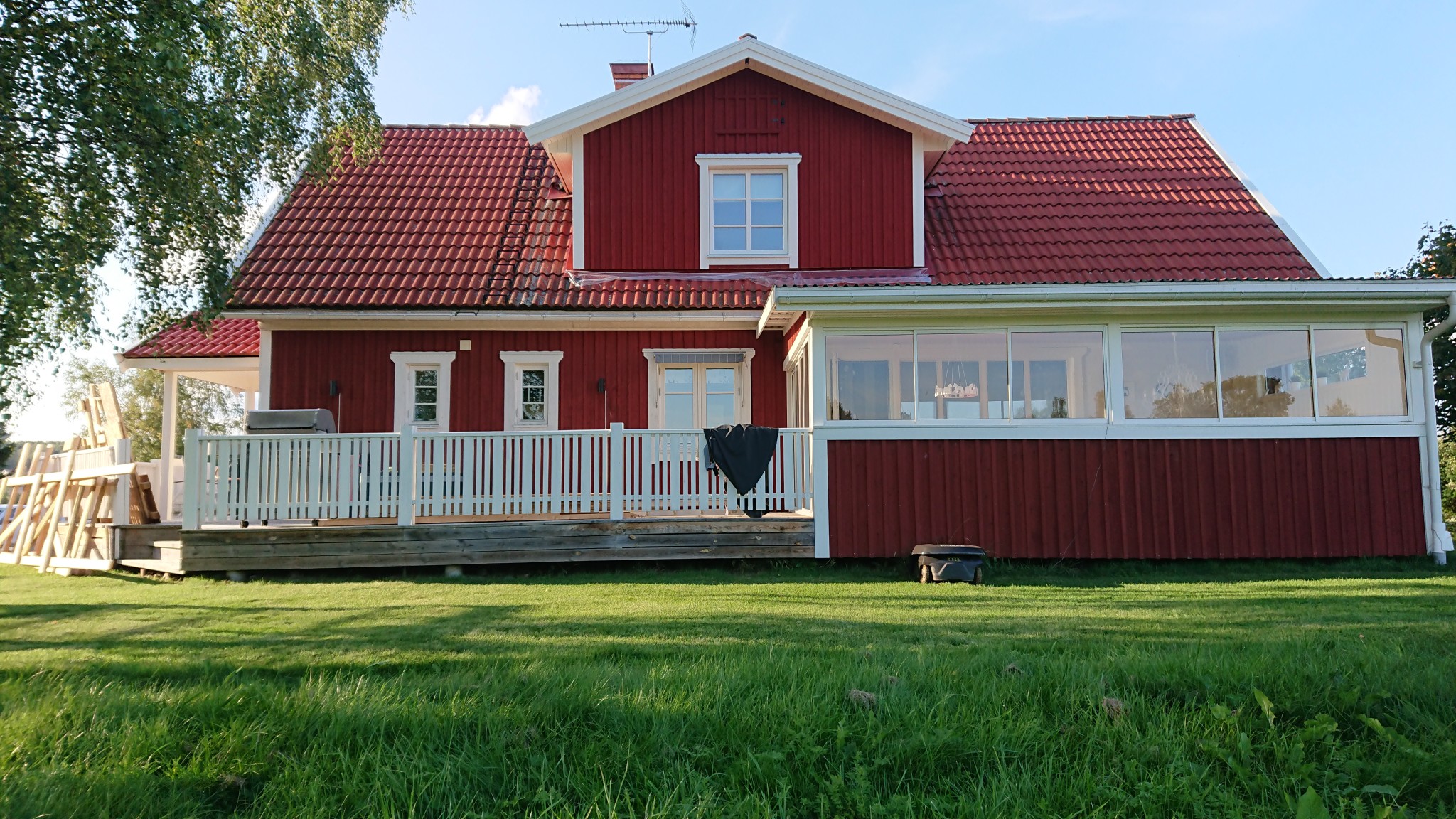 Varför är plasten kvar undrar den skarpsynte? Jo det ska dit en rad med lockläkt under fönstret och på med lite färg där och det är nog enklare att komma åt från stegen.