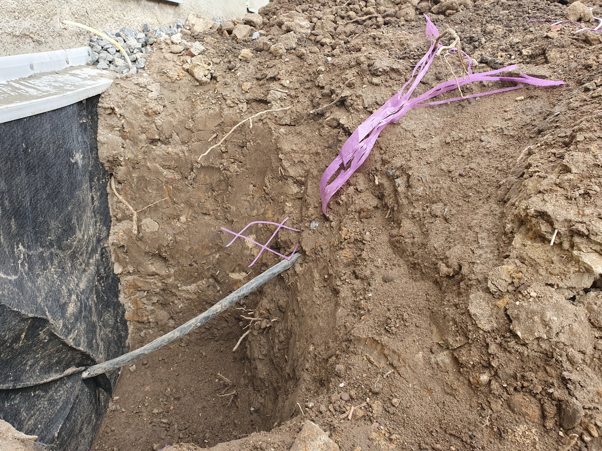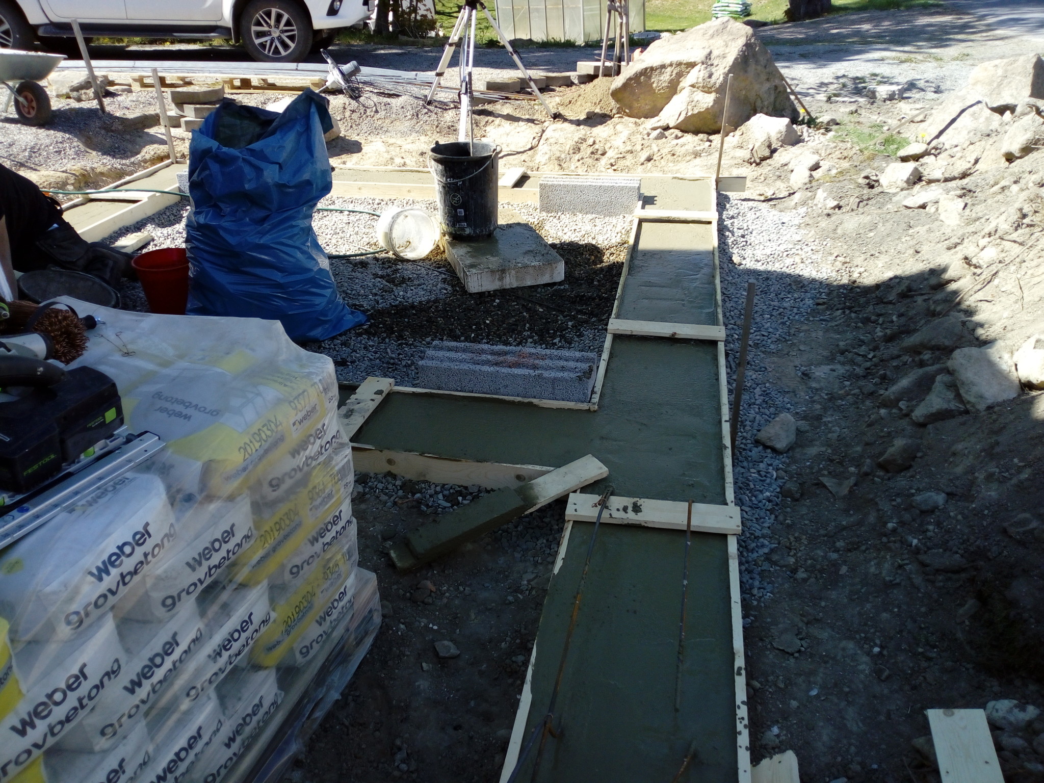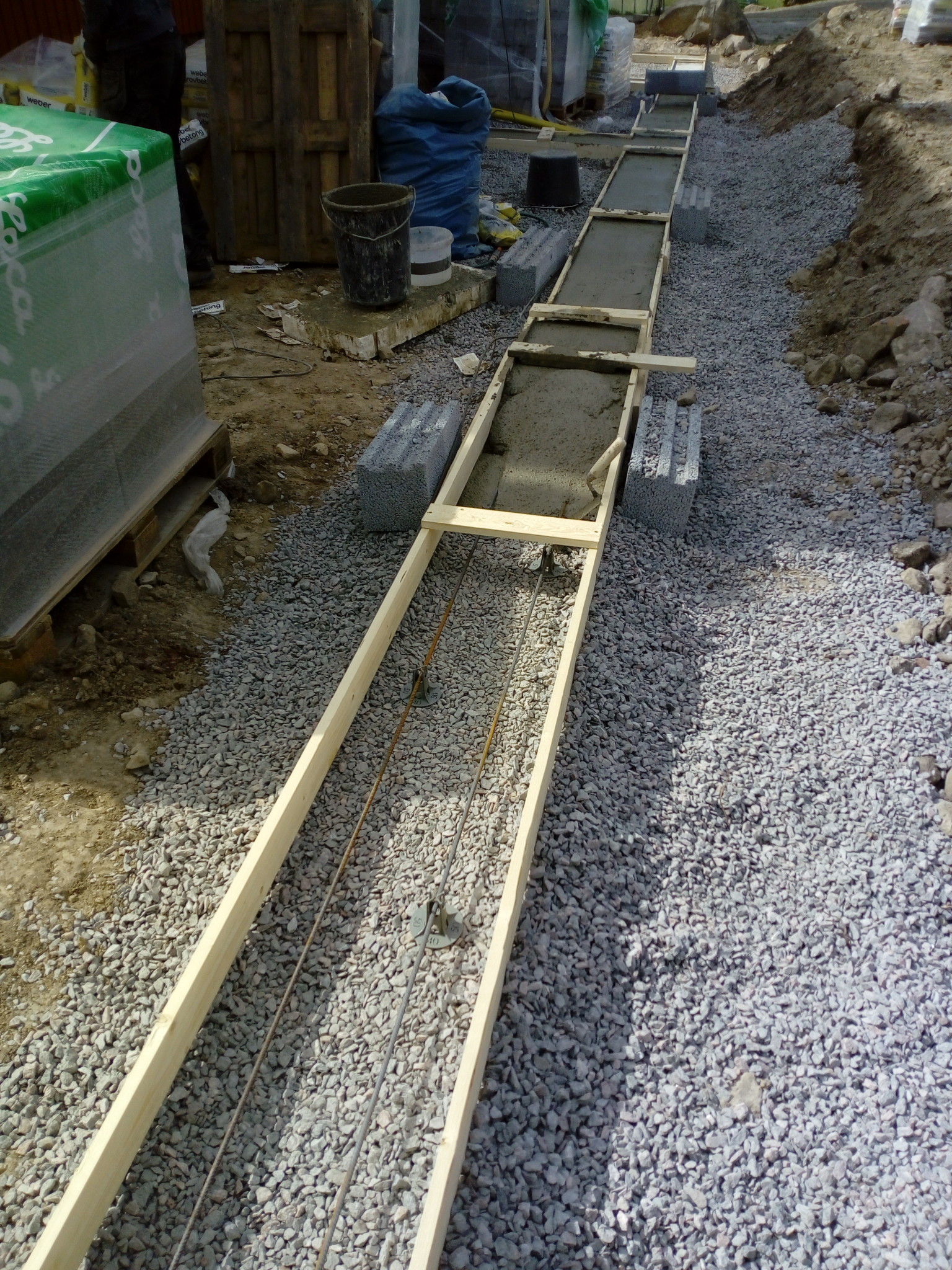 Testat att ställa ut lite av kantelementen för att få en känsla av hur allt linjerar. Kommer inte behövas särskiljt mycket 2-5 makadam för avjämning. Största jobbet idag var iaf att ta upp första dia 200mm hål i källarvägen för kulverten som ska ligga under plattan till uterummet.