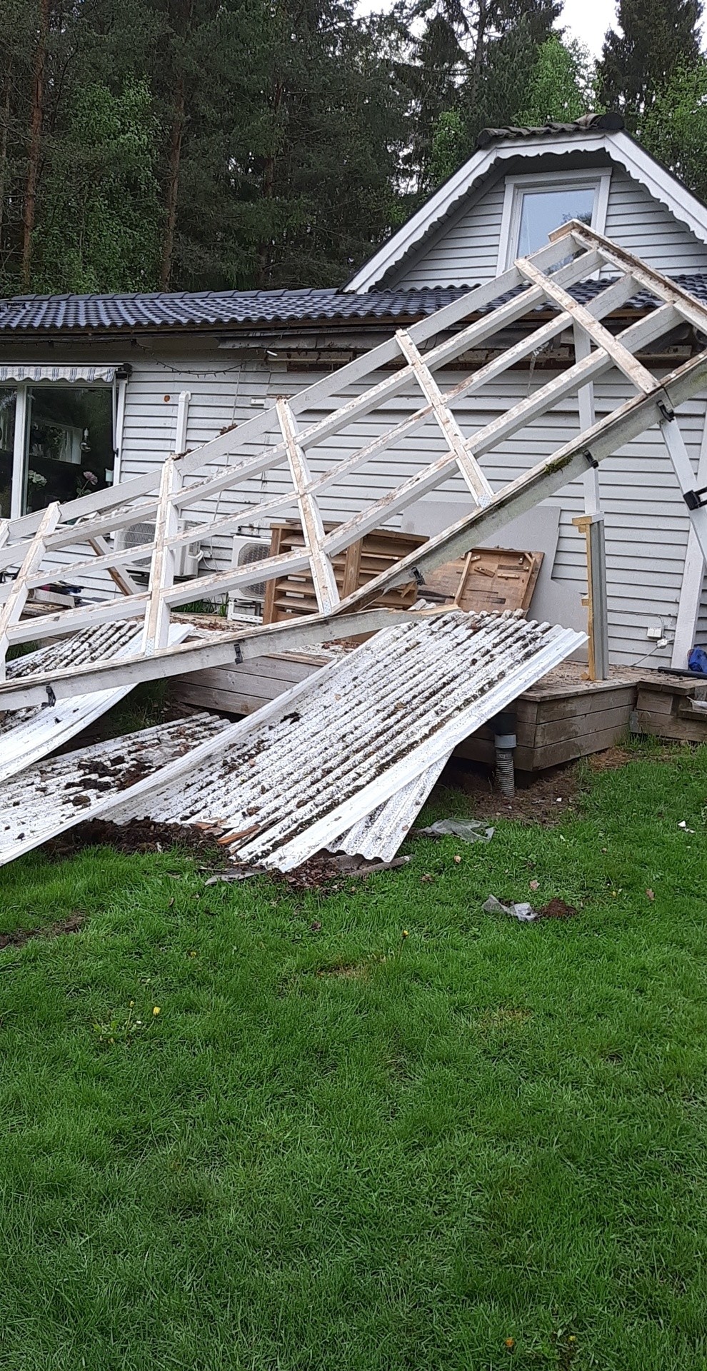 Rensat vinden inför takbytet. Släpet blev fullt och fortfarande lådor kvar att gå igenom.