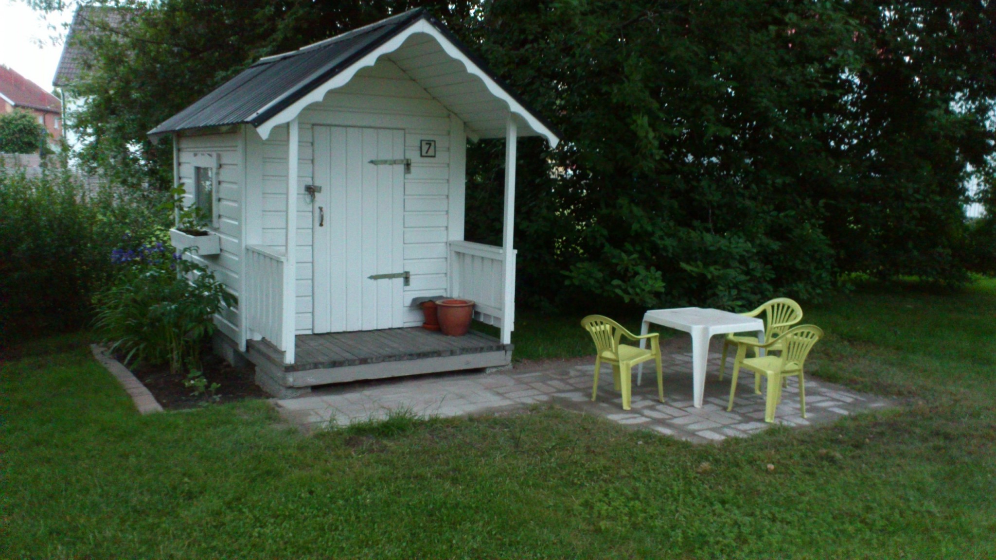 Plattor lagda till lekstugan.