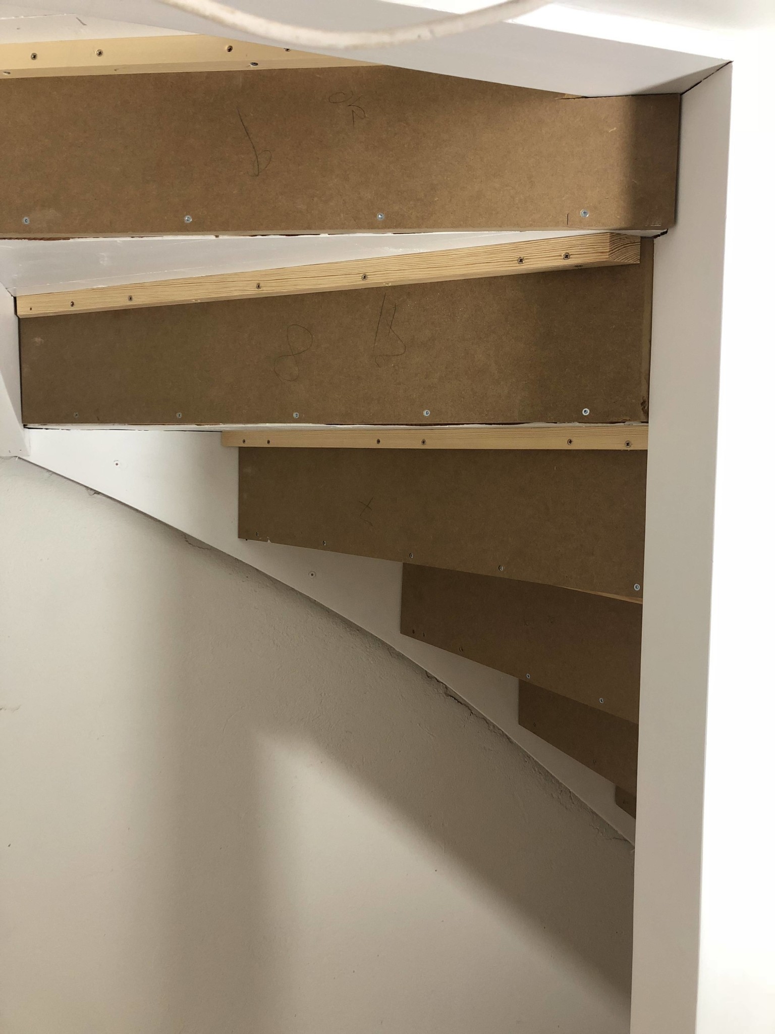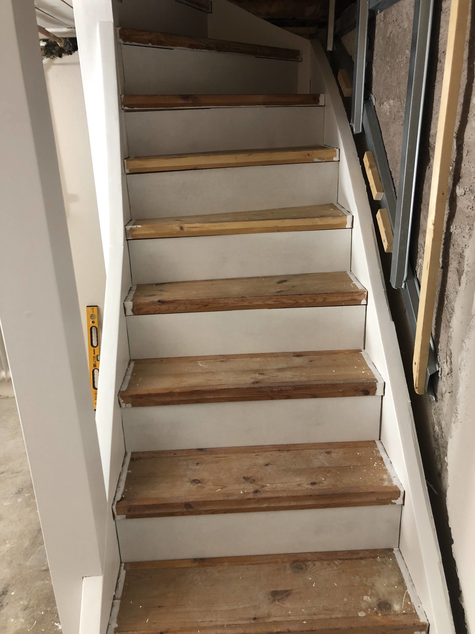 Sen byggt om källartrappan från öppen till stängd med sättsteg.
