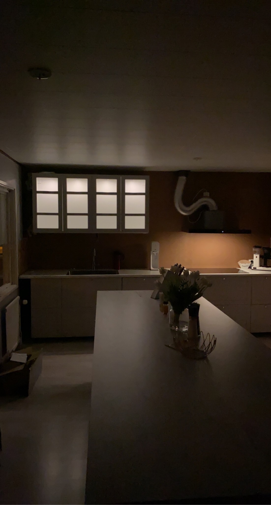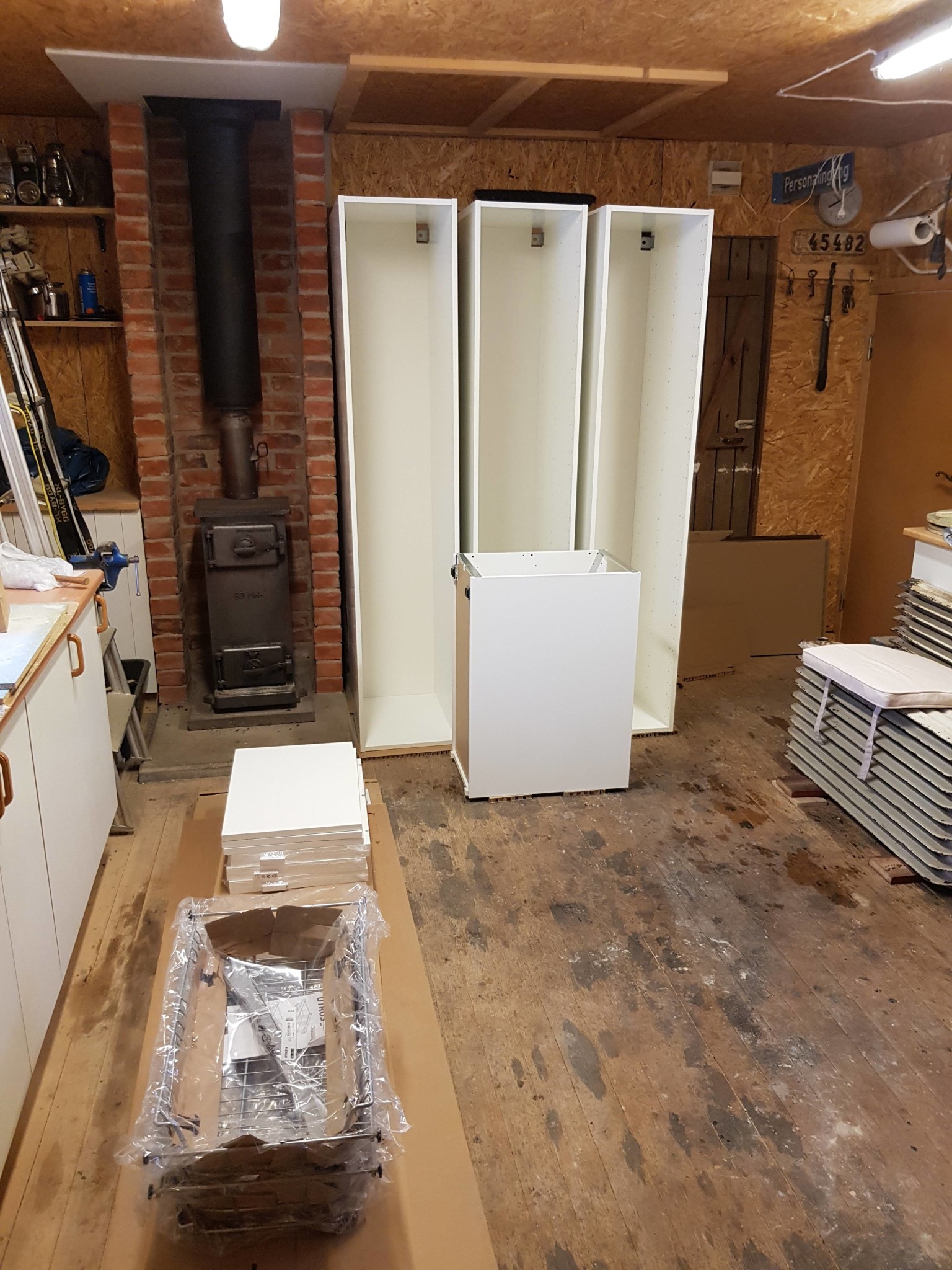 Det ska inte vara öppet ovan skåpen sen när det är klart. Det ska dit lite täckskivor också
