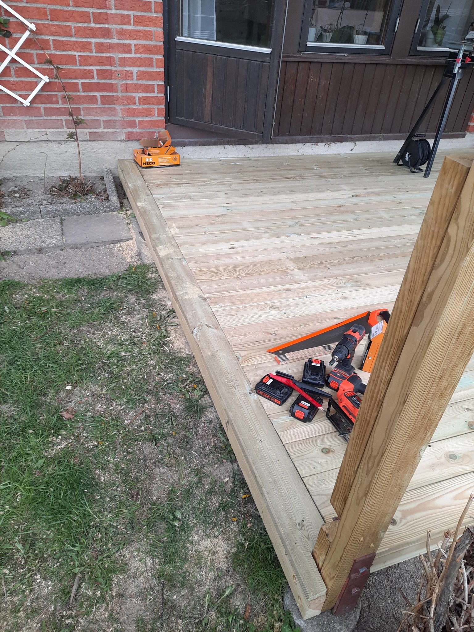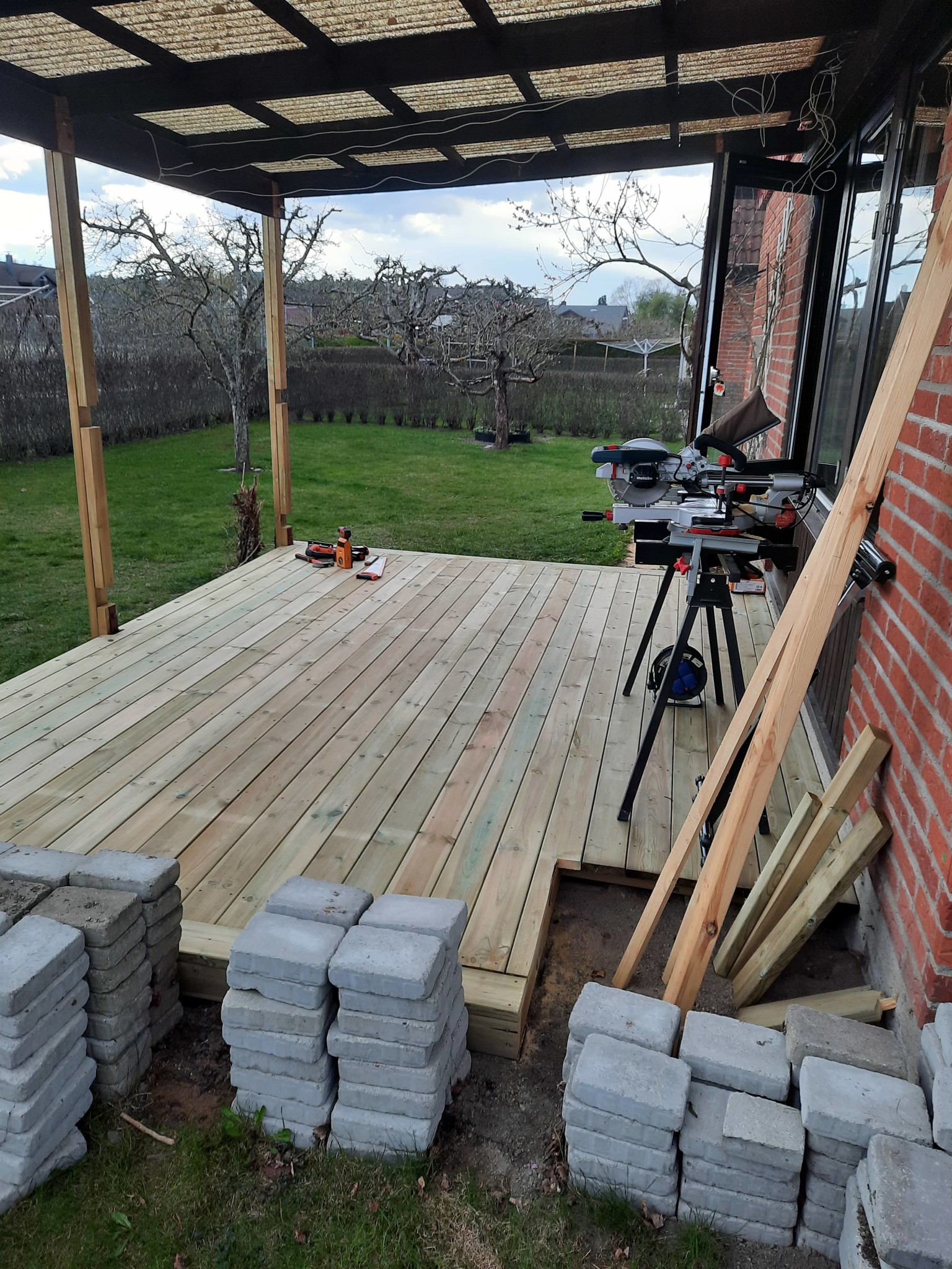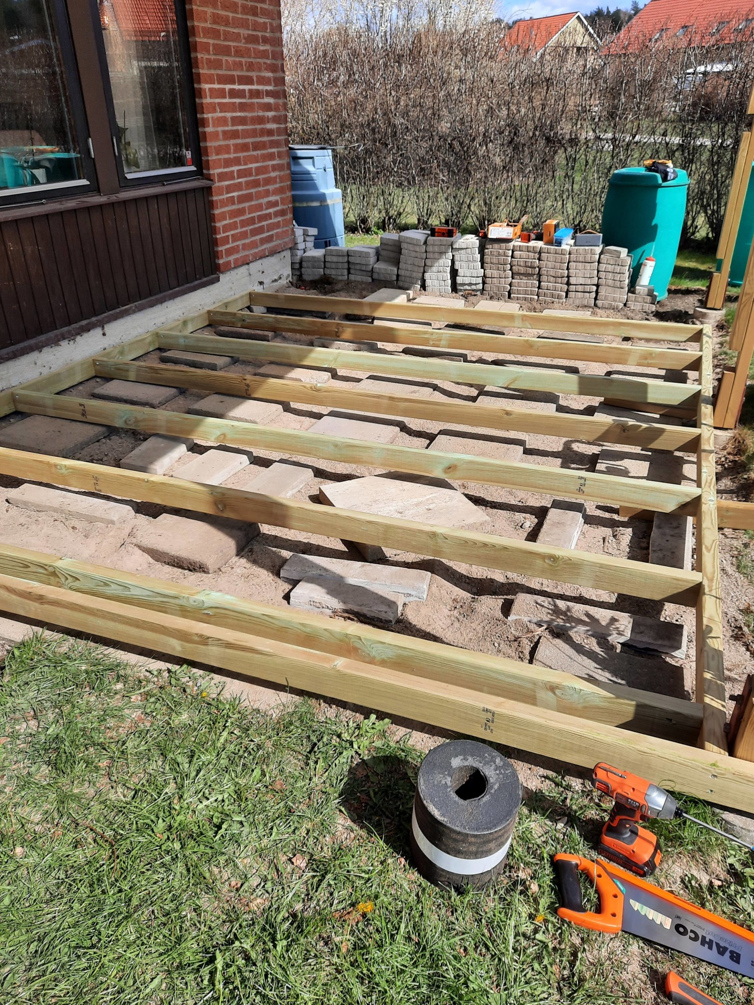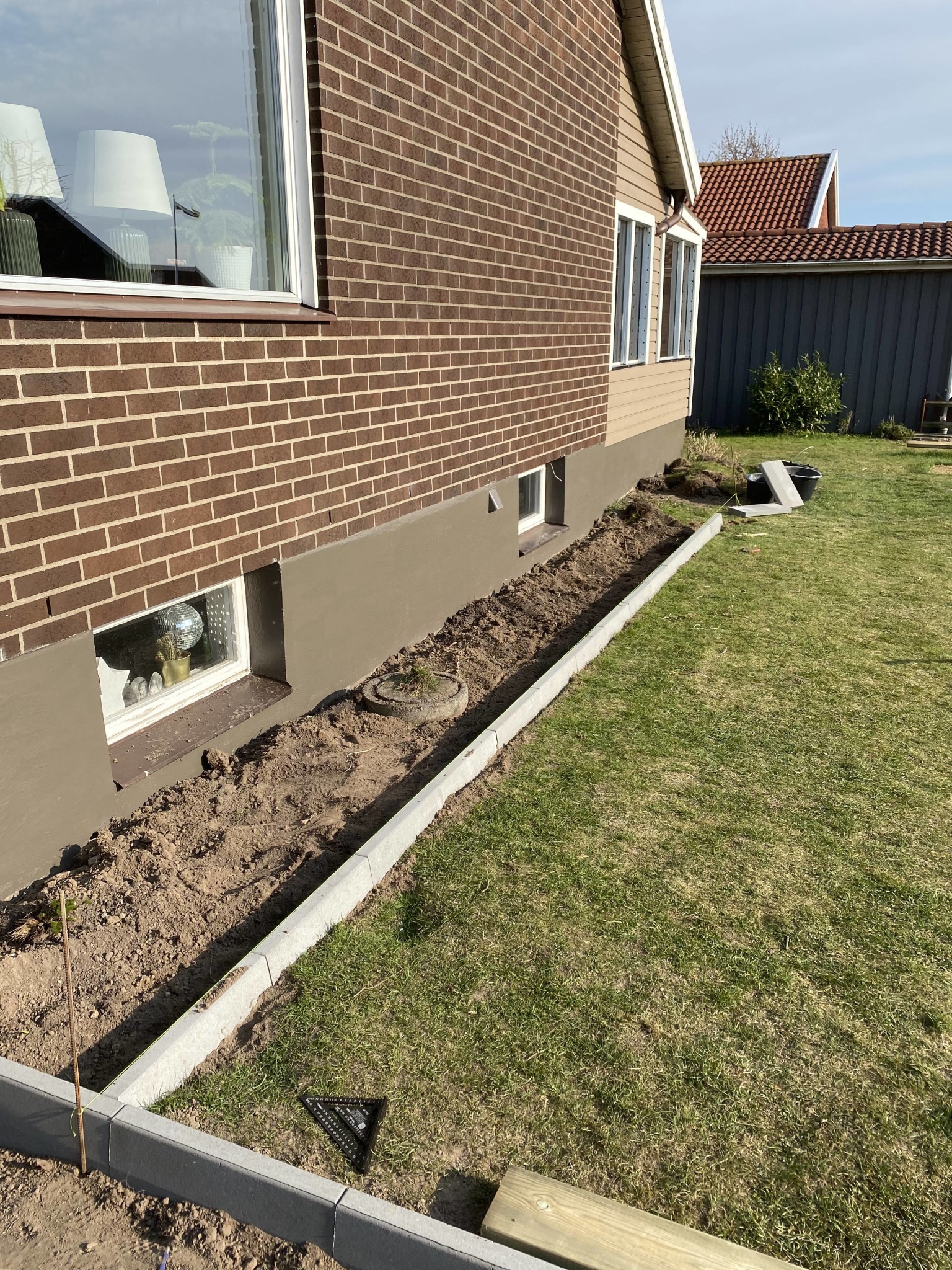 Börjat sätta kantsten för rabatt mot huset. Innanför kommer jag göra kragar av 34x145 tryckt virke där rabatterna kommer va i. Runt om blir det nån dekorsten, kanske svart diabaskross?