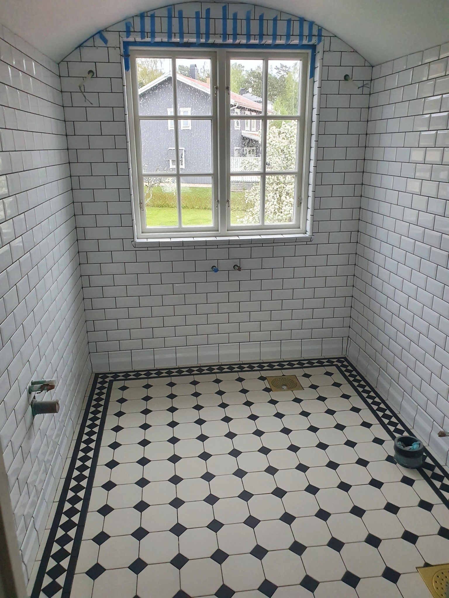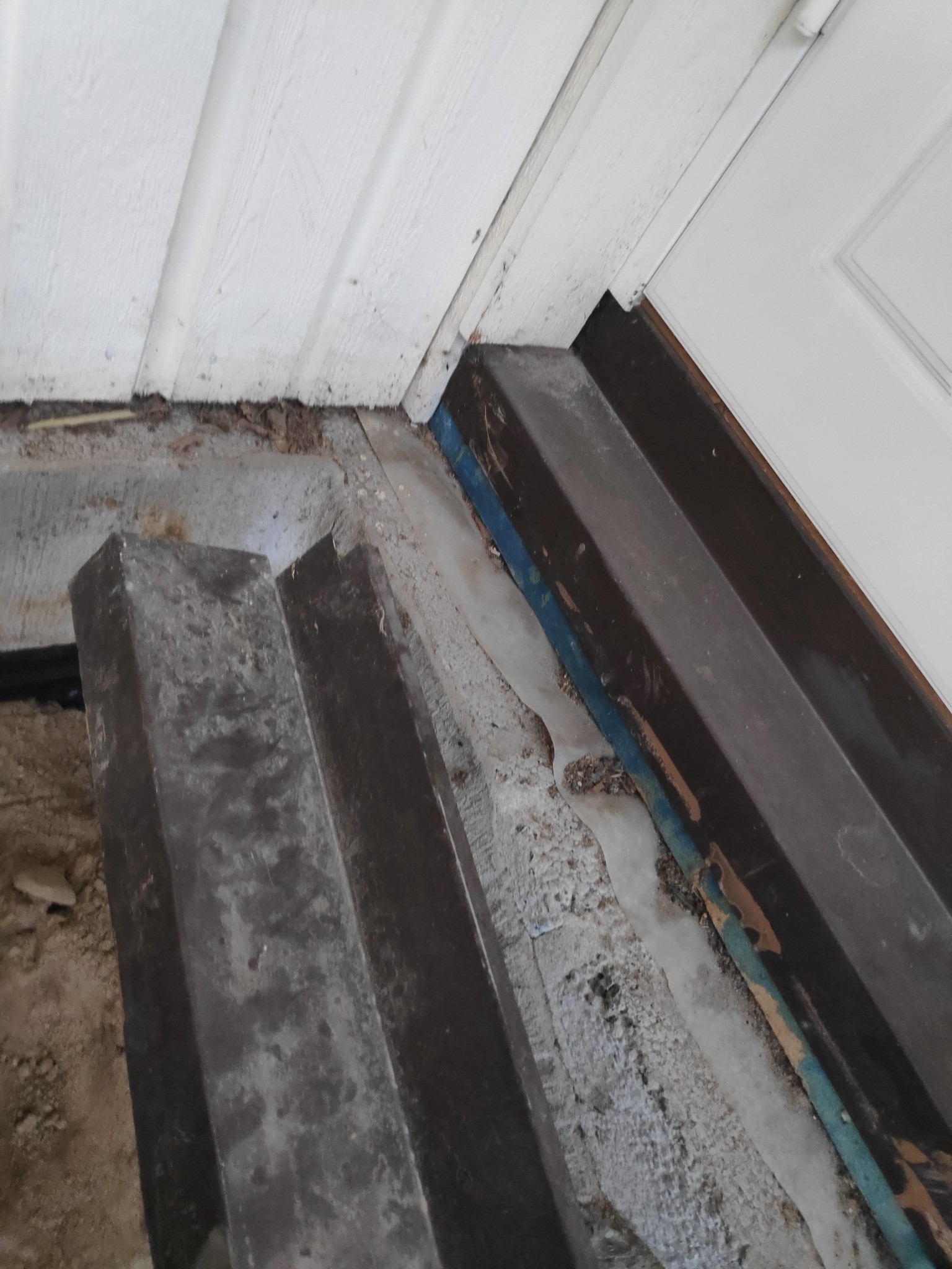 Gillade inte hur tröskelbecket är gjord. Så försökte få en fuktsäkrare lösning, måste foga ännu då man klippte för mycket.