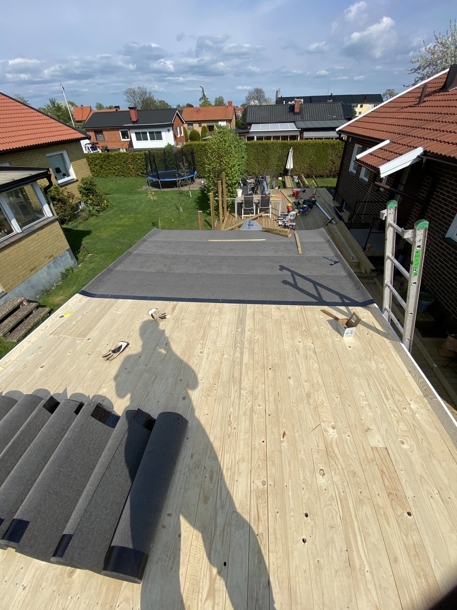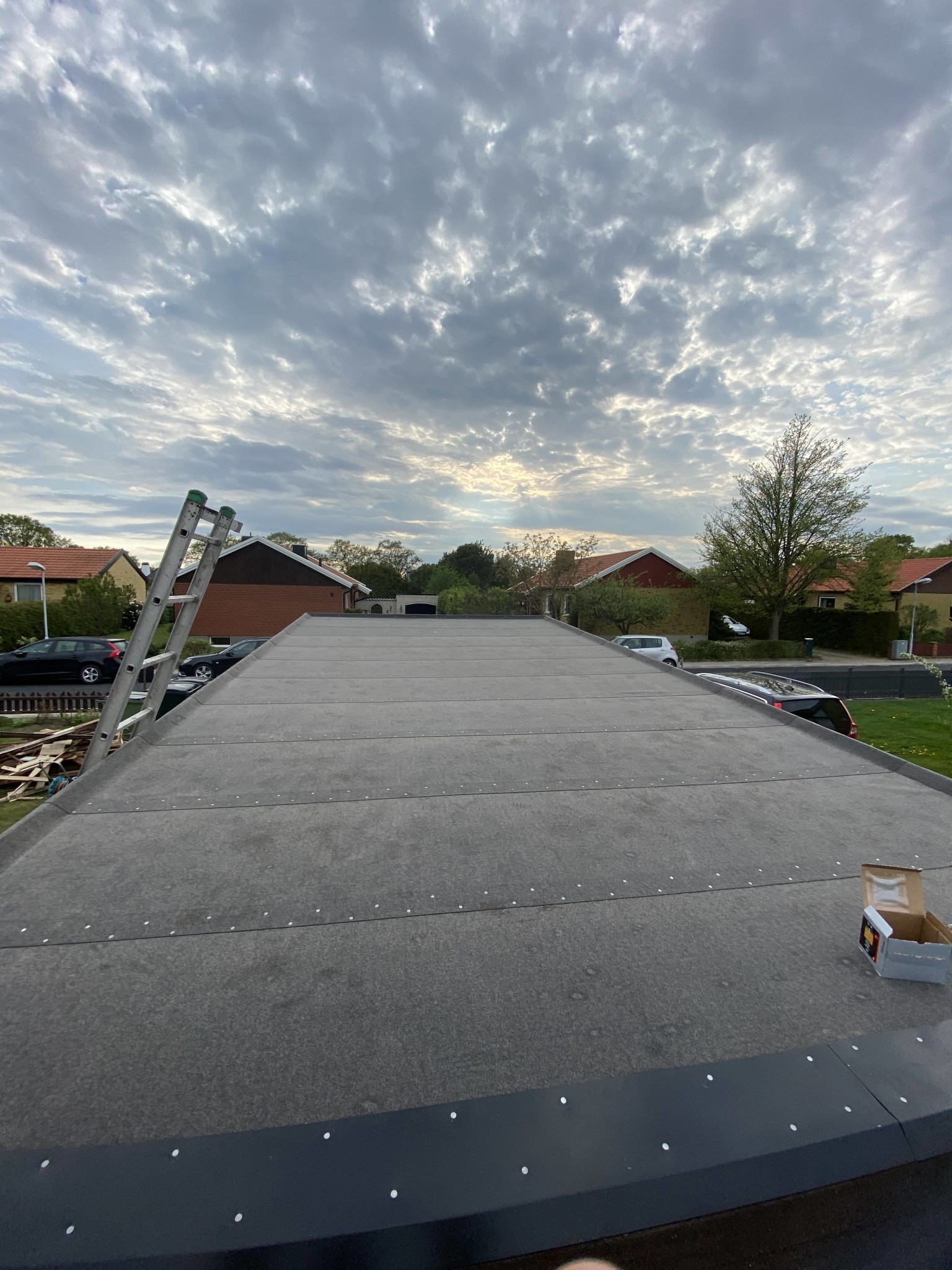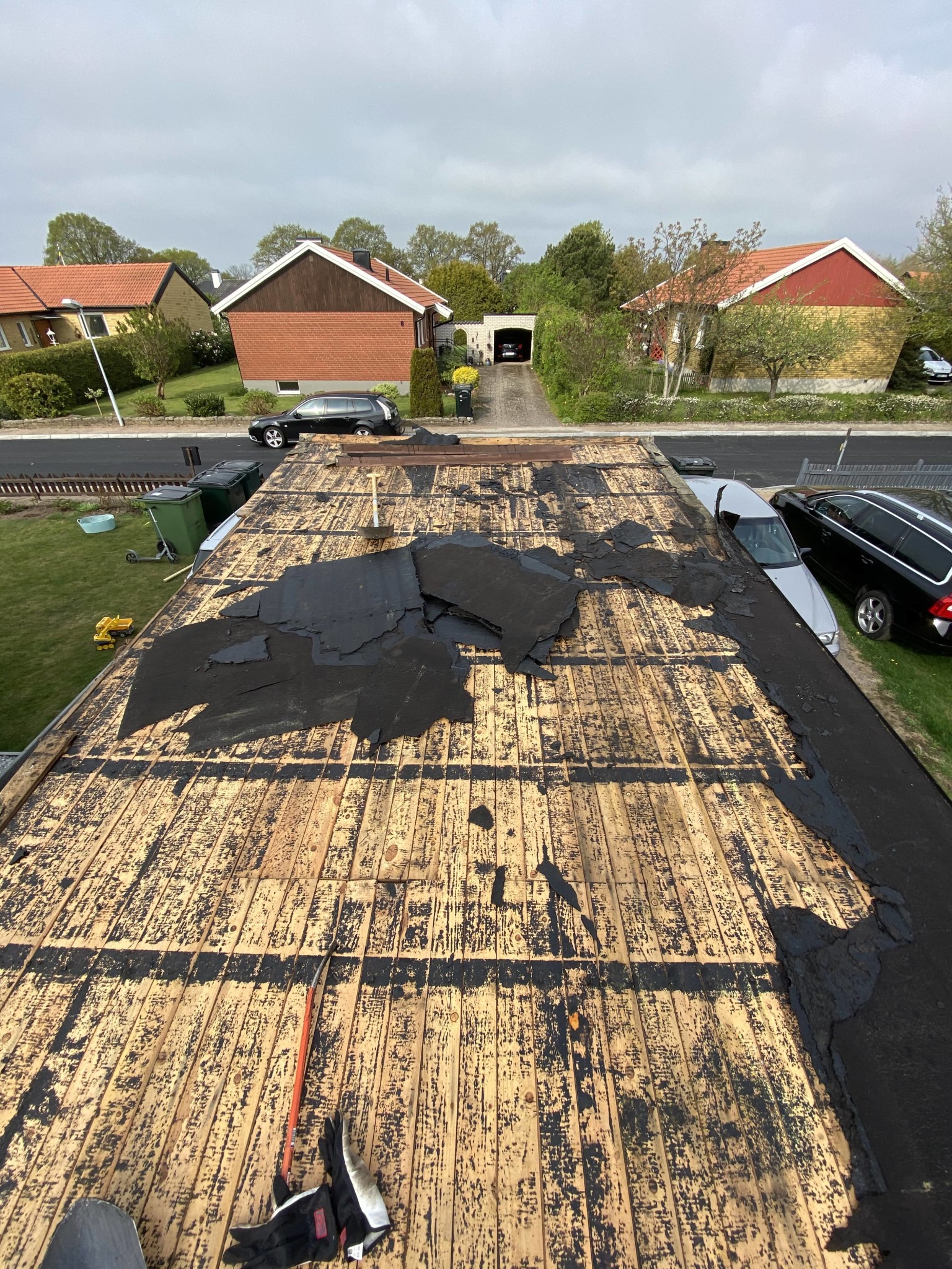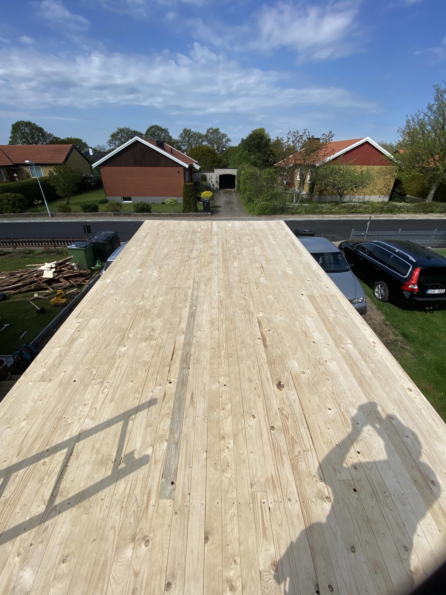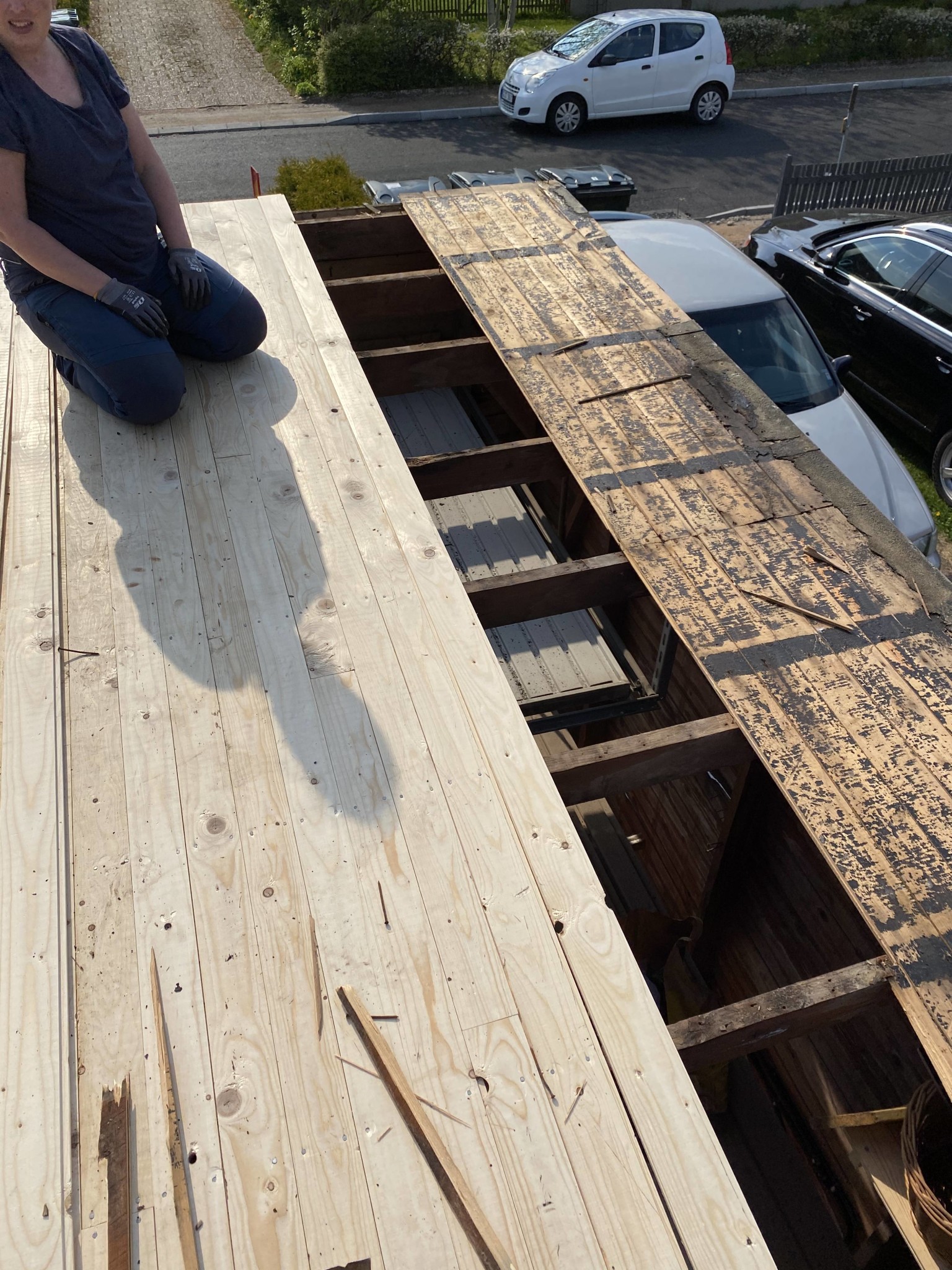 Efter två dagars jobb är garagetaket bytt från grunden. Otroligt träligt jobb, 2000 blandade spik spikade med en gammaL hammare jag hittade kvarglömd sen 1963 när vi rev en platsbyggd garderob. Väldigt skön!