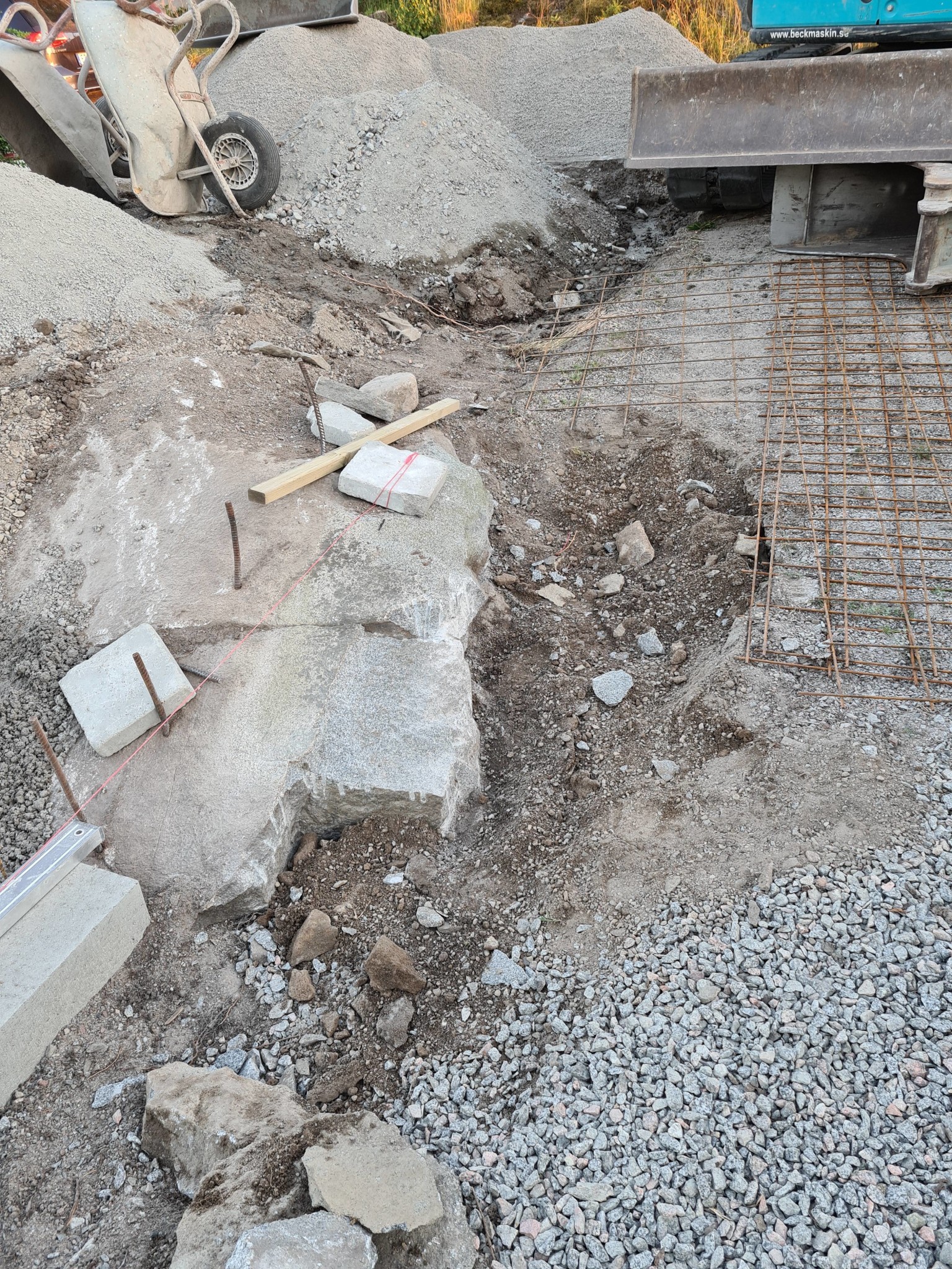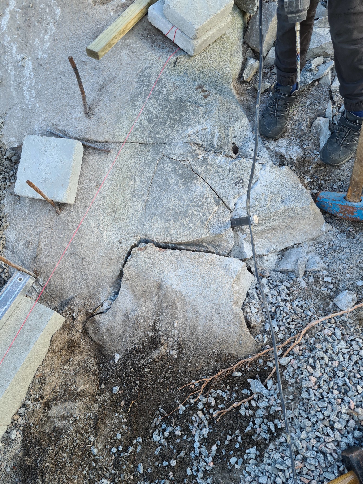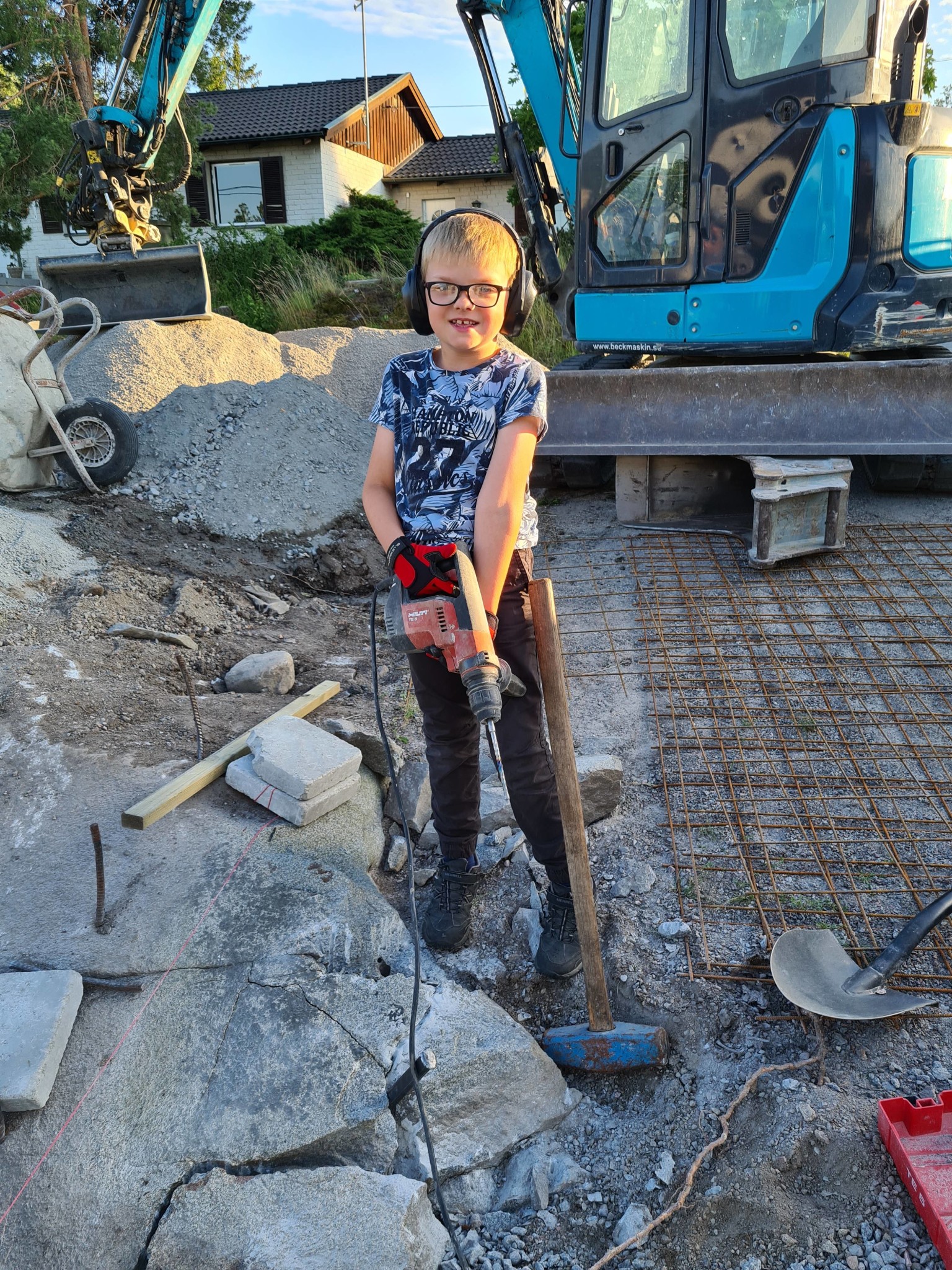 Igår så tog jag och sonen bort lite sten, det är på kanten mellan min och grannes parkering! Så vi borrade och slog kilar för att spräcka berget, gick riktigt bra, och att få spendera lite kvalitetstid med sonen som bonus!