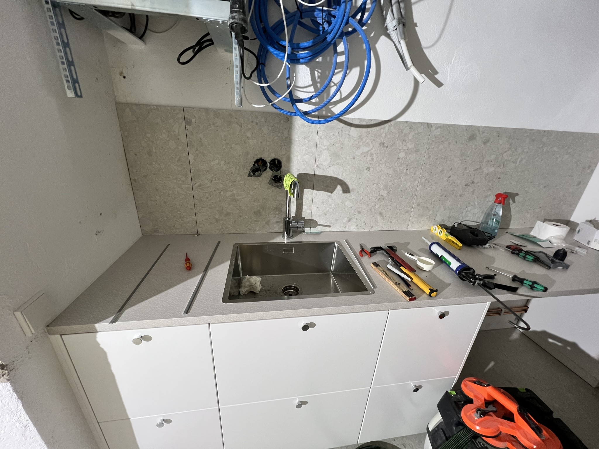 Tvättat friggan (och mig själv) inför målning. Nästa bild blir inte på en röd frigga. Den observante kan även se att det inte räcker med fogmassa nertill på dörrarna, behöver byta panelen på dessa med eller sätta dit en sparkplåt.