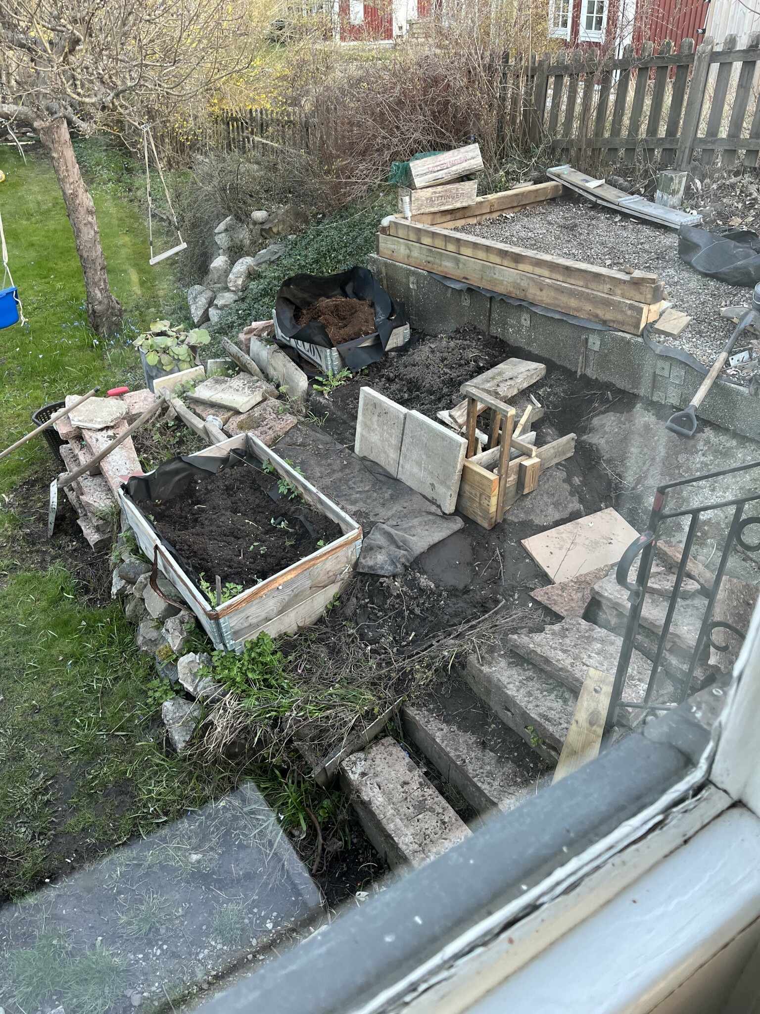 Gör i ordning odlingsplatsen som jag gjorde lite halvdant för två år sedan (första våren i huset).