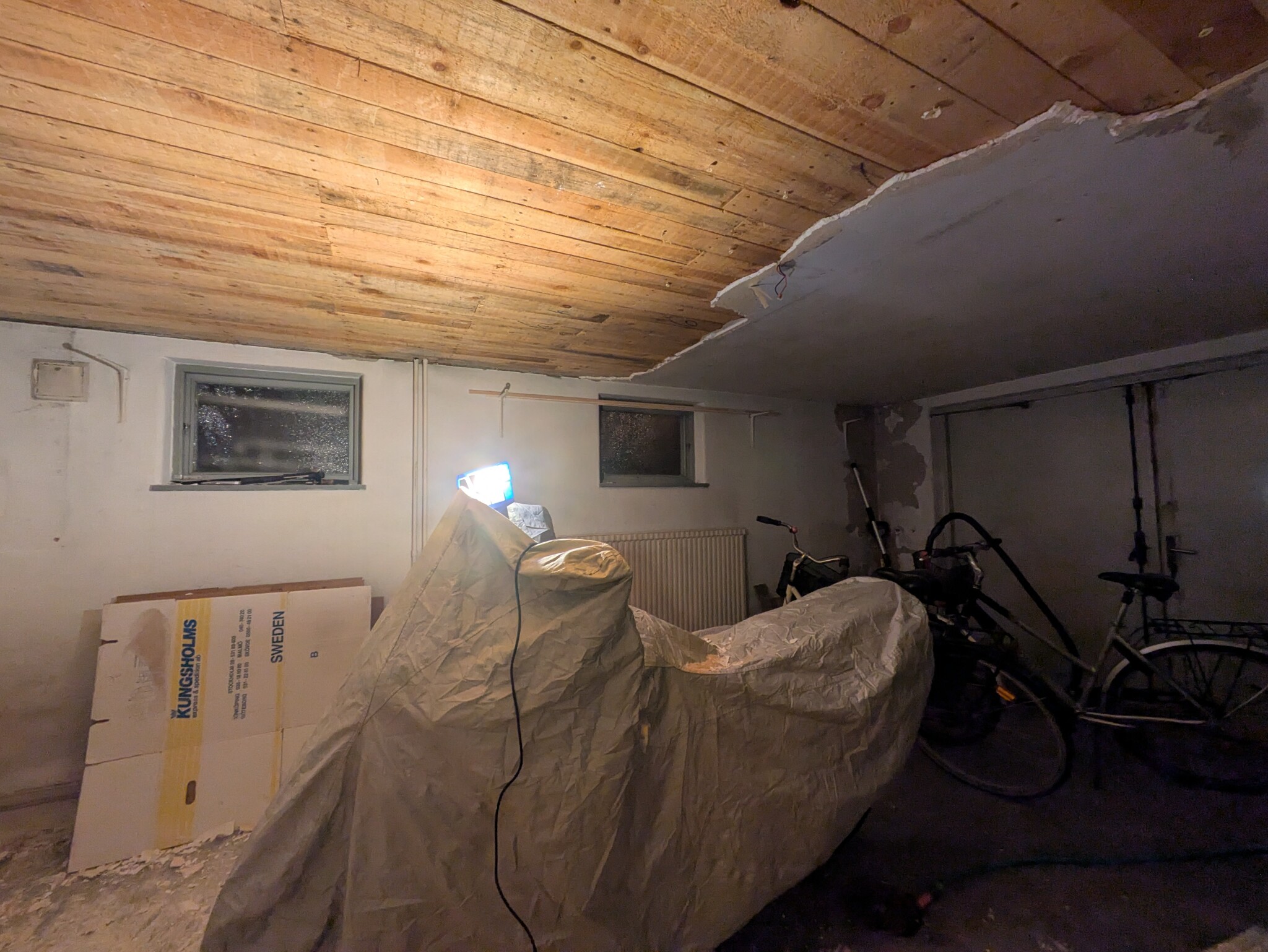 Tömmer 2 liter kondensvatten från avfuktaren per dygn och friggan håller 20+ degC med en 500 watts frostvakt.
