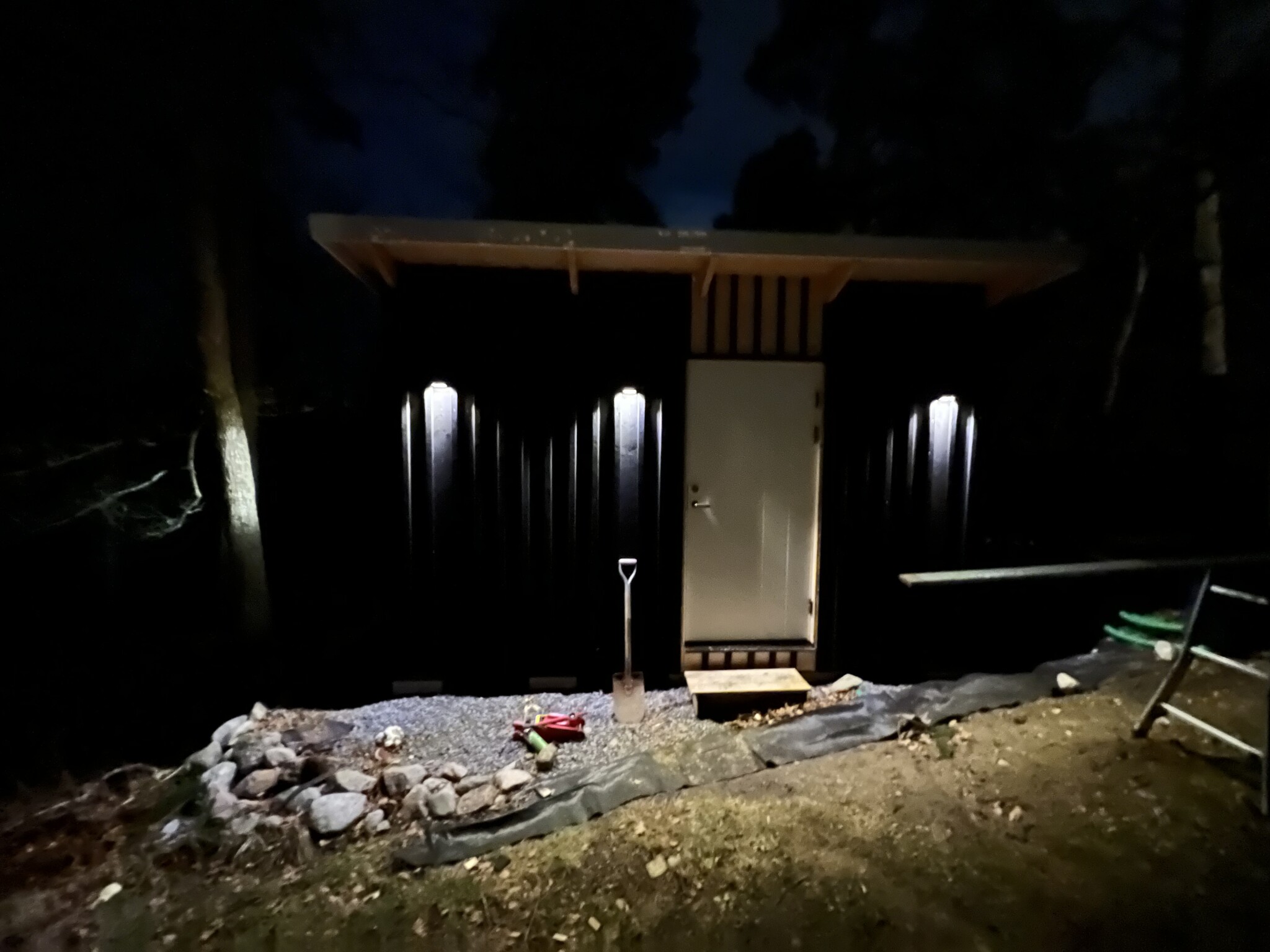 Varmvita lampor, exponeringstiden luras lite. Det är mysigt gulvitt.