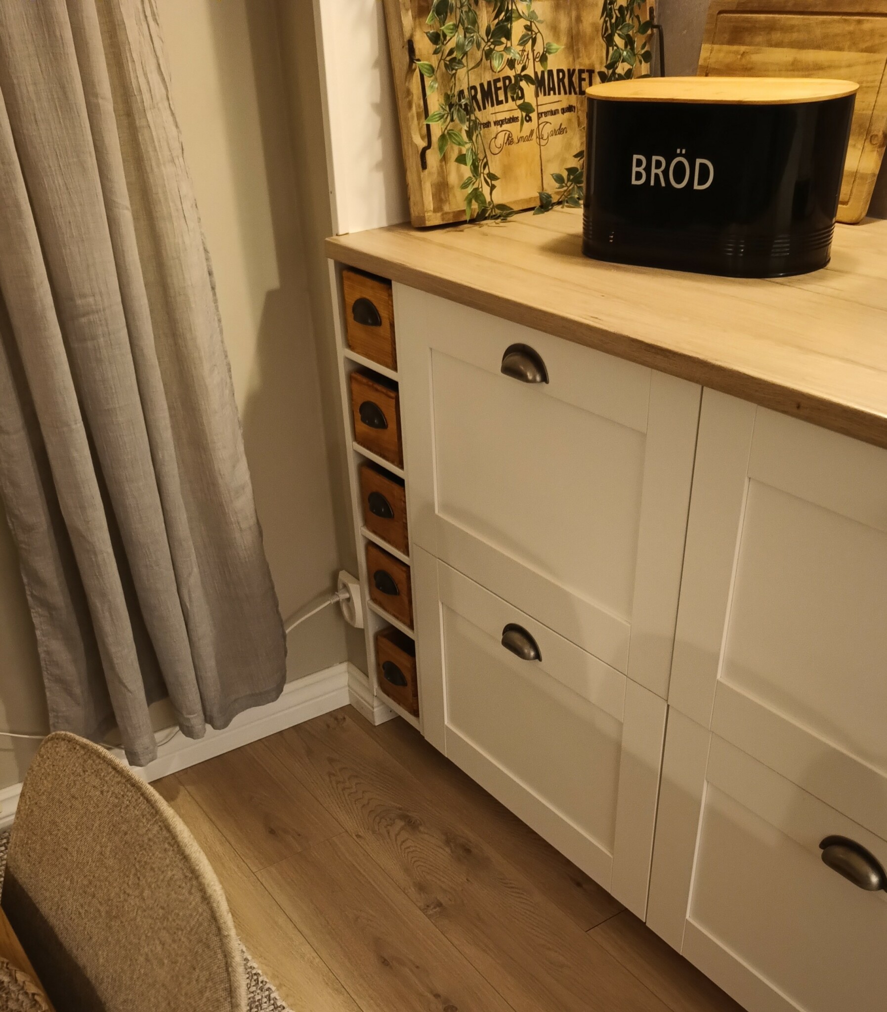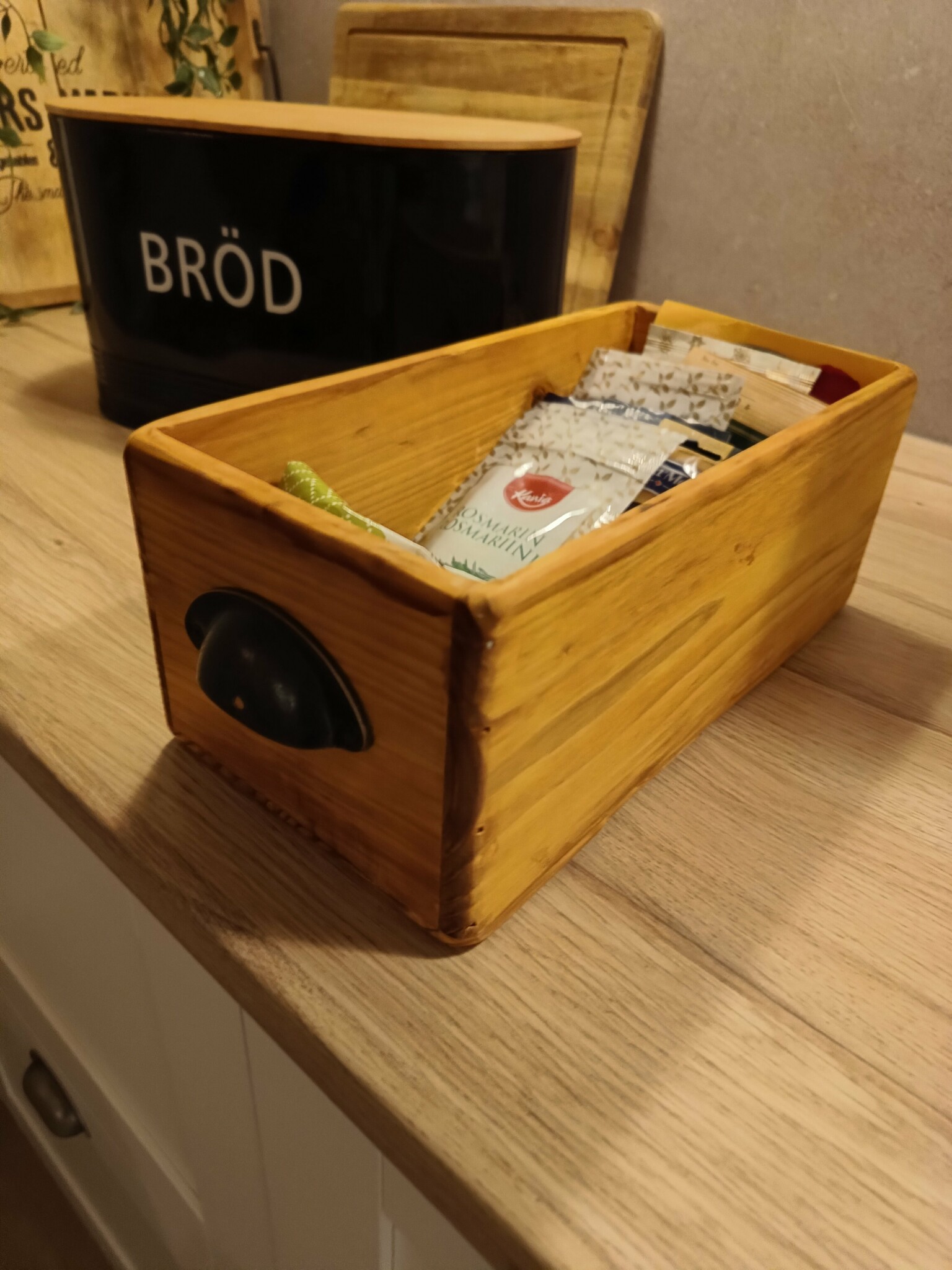 Det fick duga och frun blev nöjd att ha kryddpåsar och sånt att lägga i lådorna.