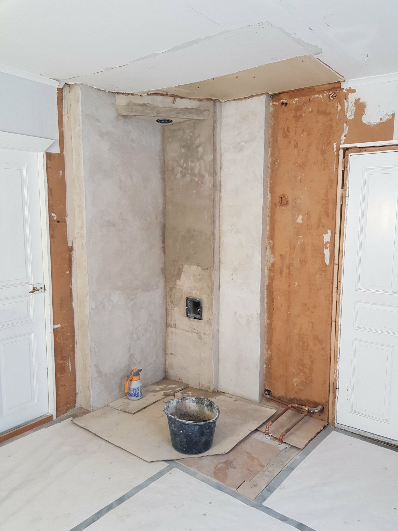 Änteligen är sista putsningen klar, sotlucka och inmurningsstos på plats. Så nu kan jag stryka denna surdegen på listan och gå på att få ordning på taket istället.