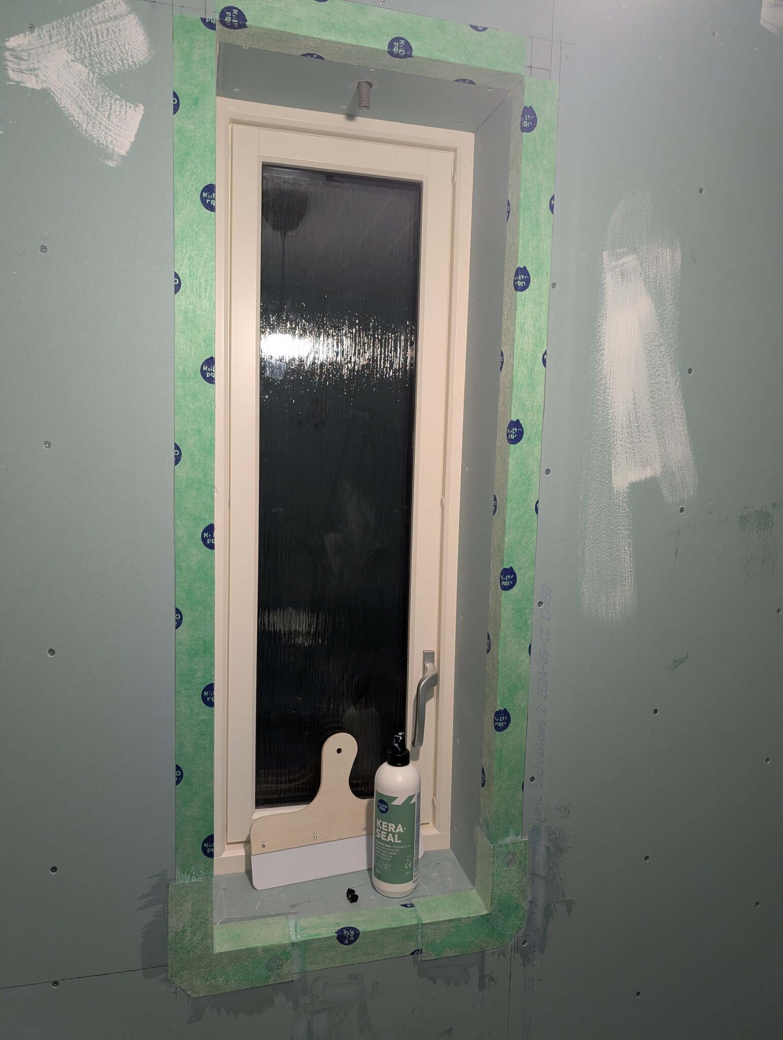 I vÀntan pÄ att vi ska bestÀmma oss för vad vi ska ha för bankskiva i badrummet har jag lagt dit en vanlig spÄnskiva. Efter att funderat i nÄgra mÄnader Àr vi lika ifrÄn svaret som skivan Àr vacker, och mina ögon landade pÄ en rulle vit vinyl som stod i förrÄdet.
