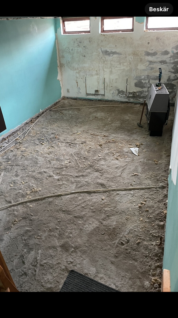 Imorgon flytspackling och senare under påsken så kan jag börja bygga upp golven igen. Börjar med det andra rummet som redan är torrt och plant.