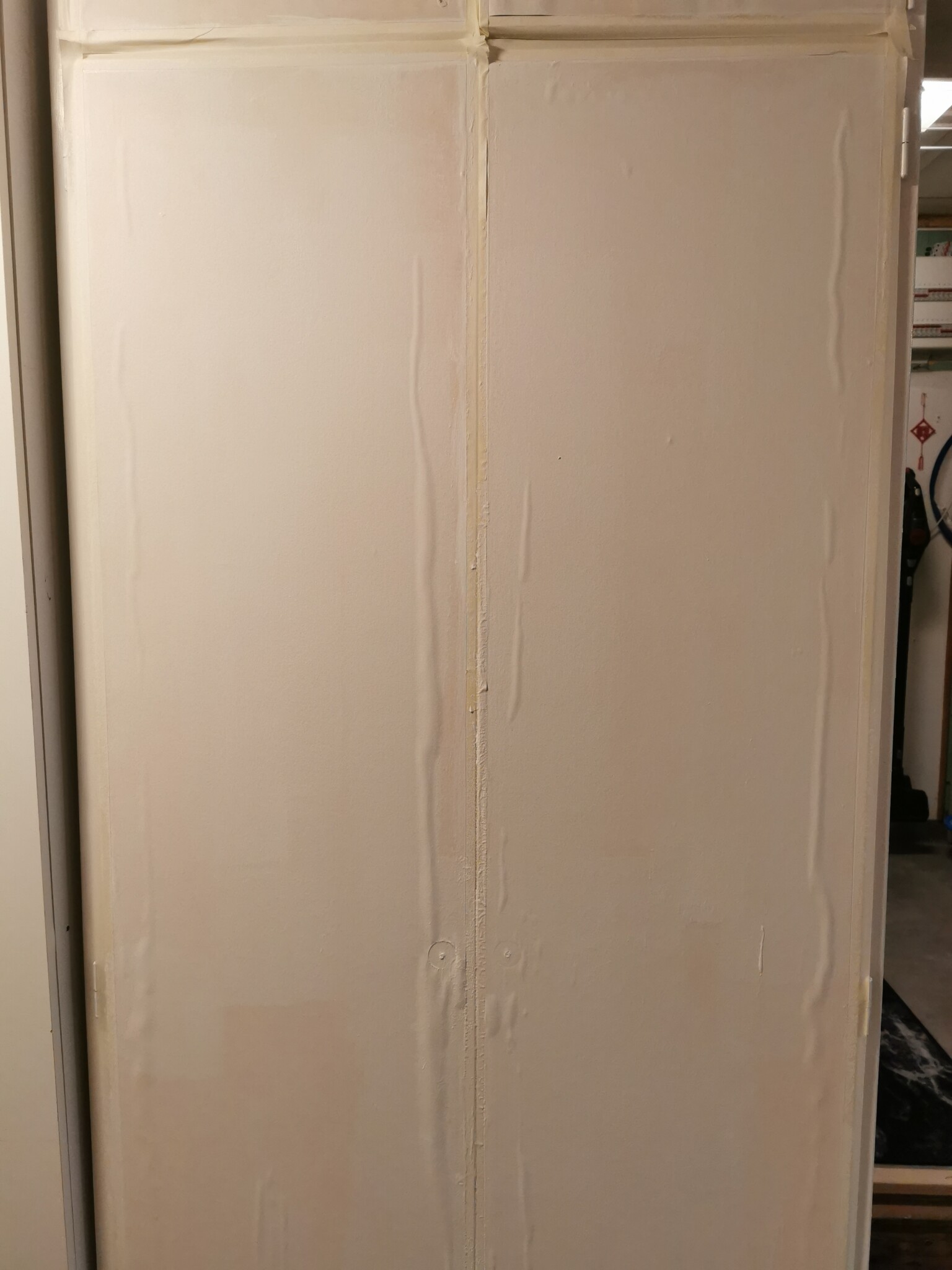Tyvärr släpper tspetklistret från anno dazumal. Får vänta tills i morgon och se om det självläker, hoppas slippa slipa ner dörrarna. Vill spackla så lite som möjligt.