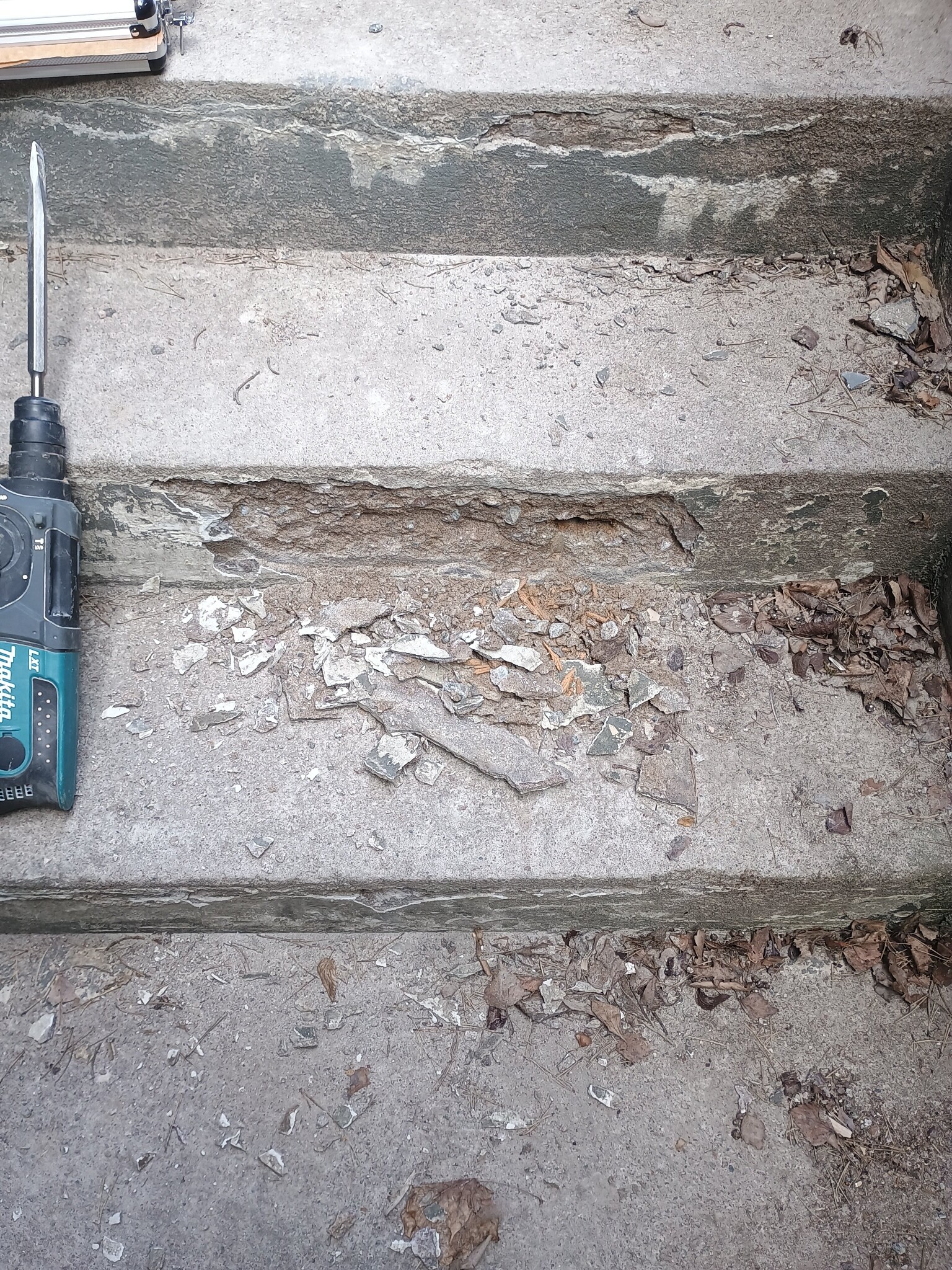 Sedan är det ju så att när verktygen är framme måste man ju kolla något annat. Det blev att bila upp den där lagningen i källartrappen som släppt.