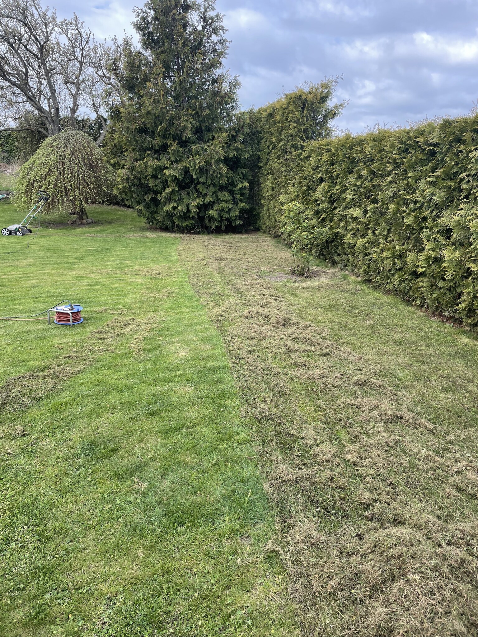 Vertikal skurit gräsmattan och topp dressat