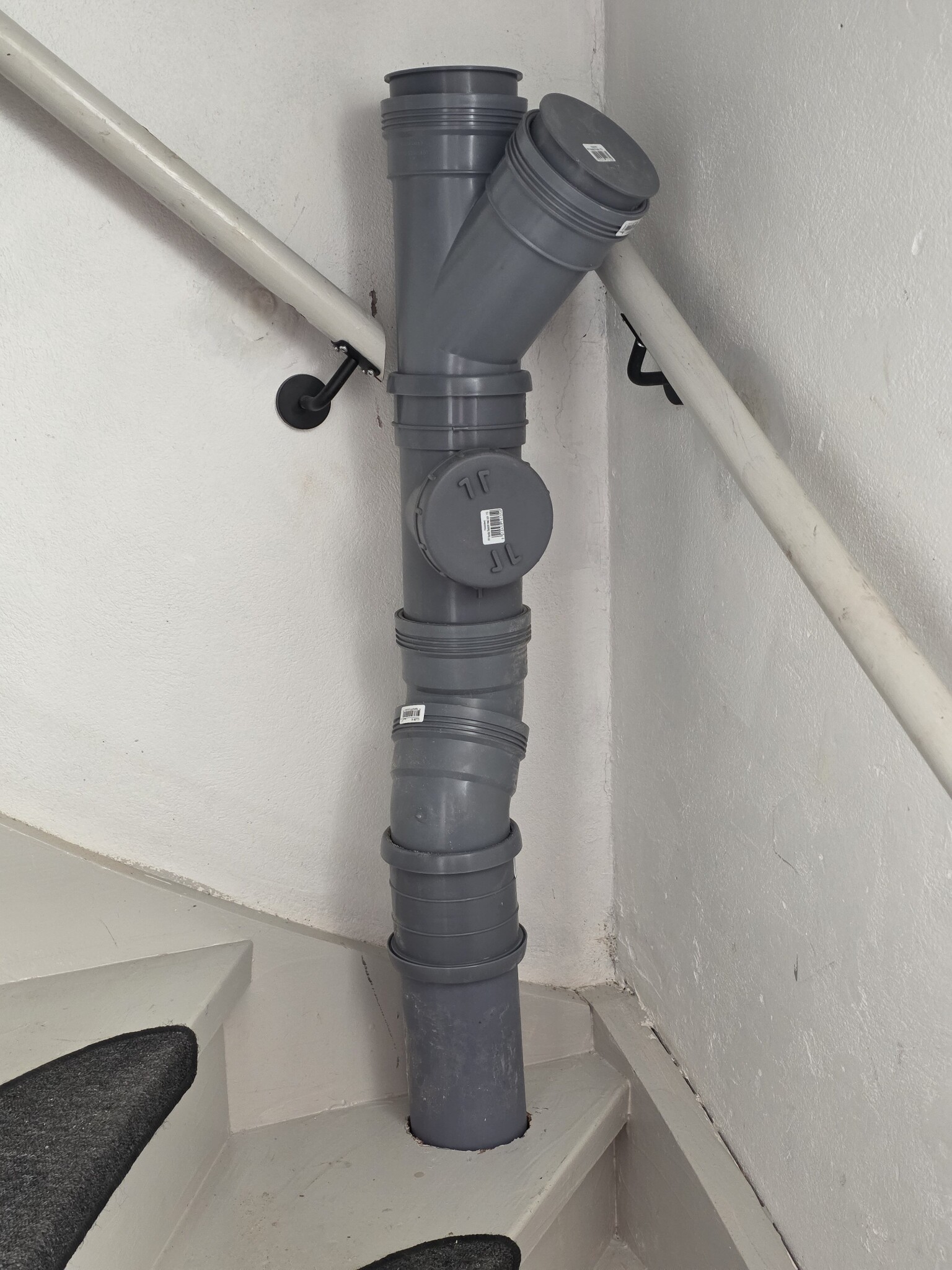 Så nu skall röret bara fortsätta till vinden och ersätta gamla avluftningsröret i gjutjärn.