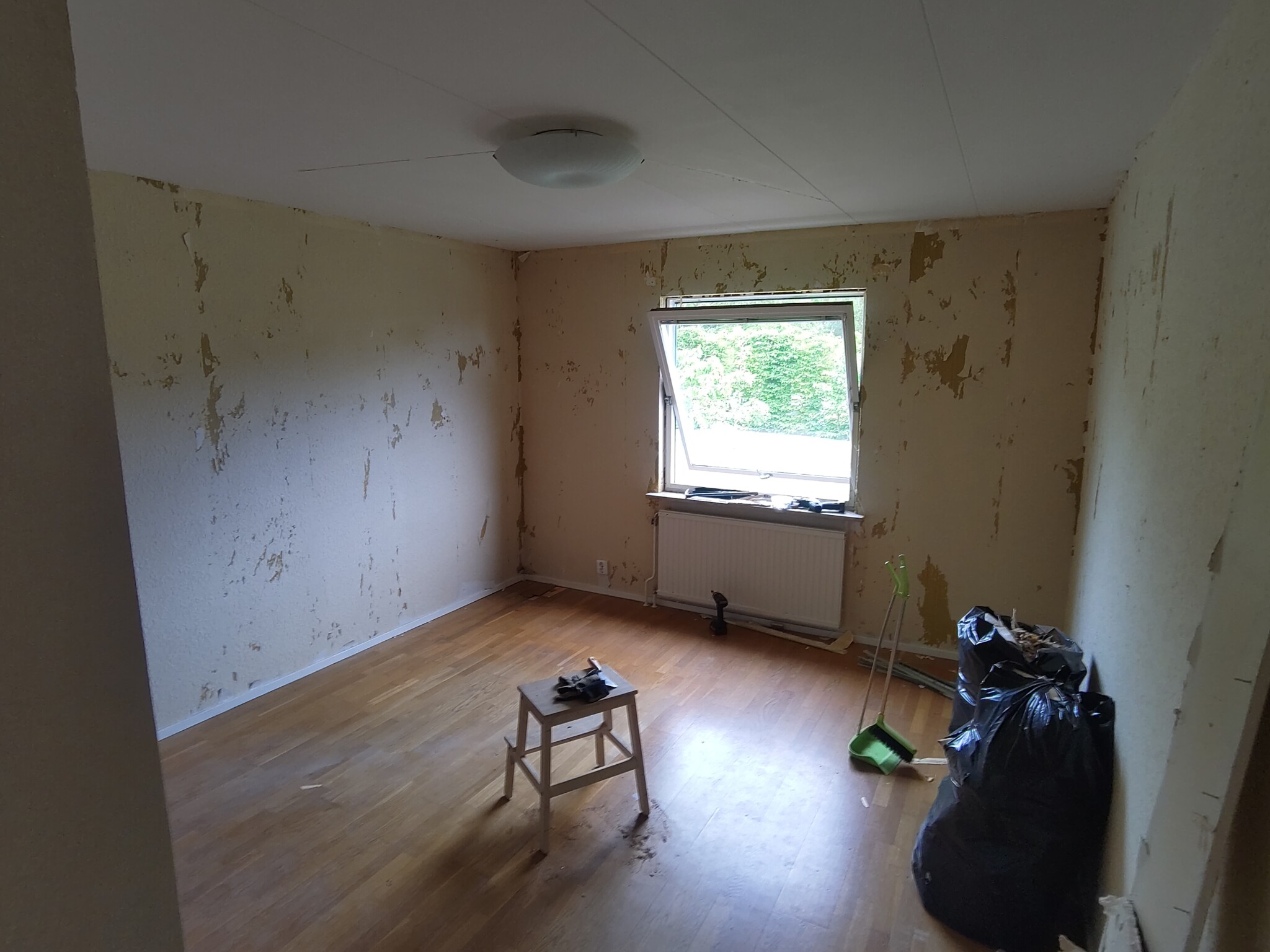Påbörjat ytskiktsrenovering i sista rummet som inte är kök/badrum.