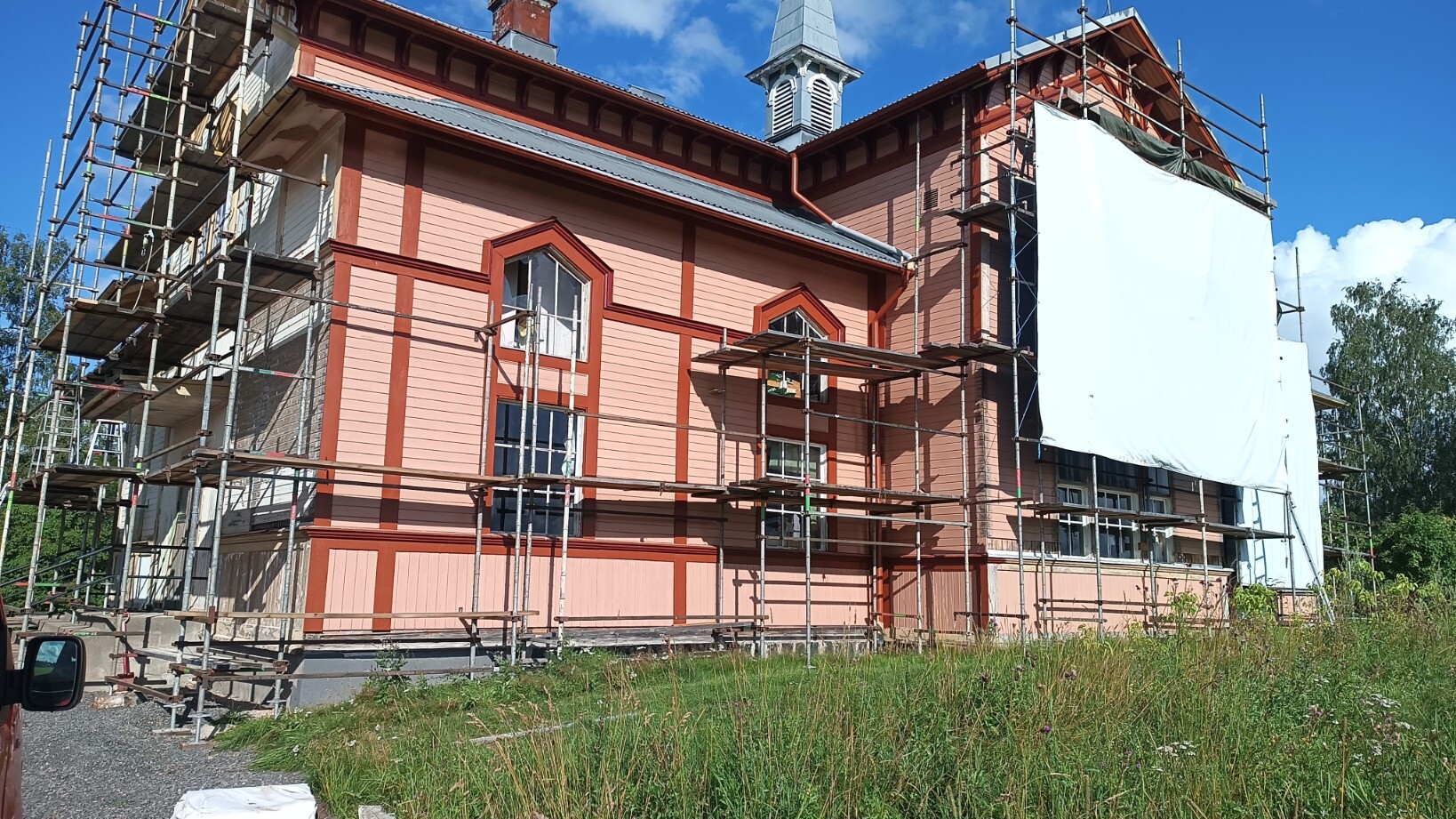 Det är bara så jobbigt att fixa småsakerna från stege. Där det inte behövs fixas genast, där skjuter jag på det till dess att jag hyr in en hantverkare som får bygga ställning istället. Måla från stege går an, men att byta foder från stege är inte lika roligt.