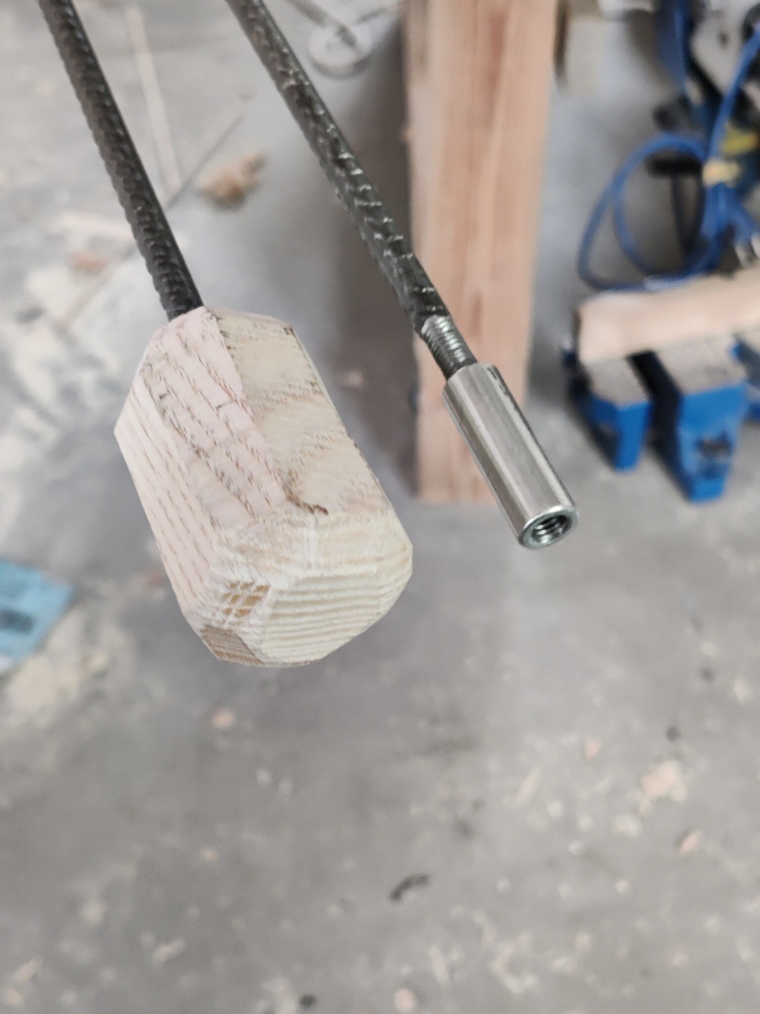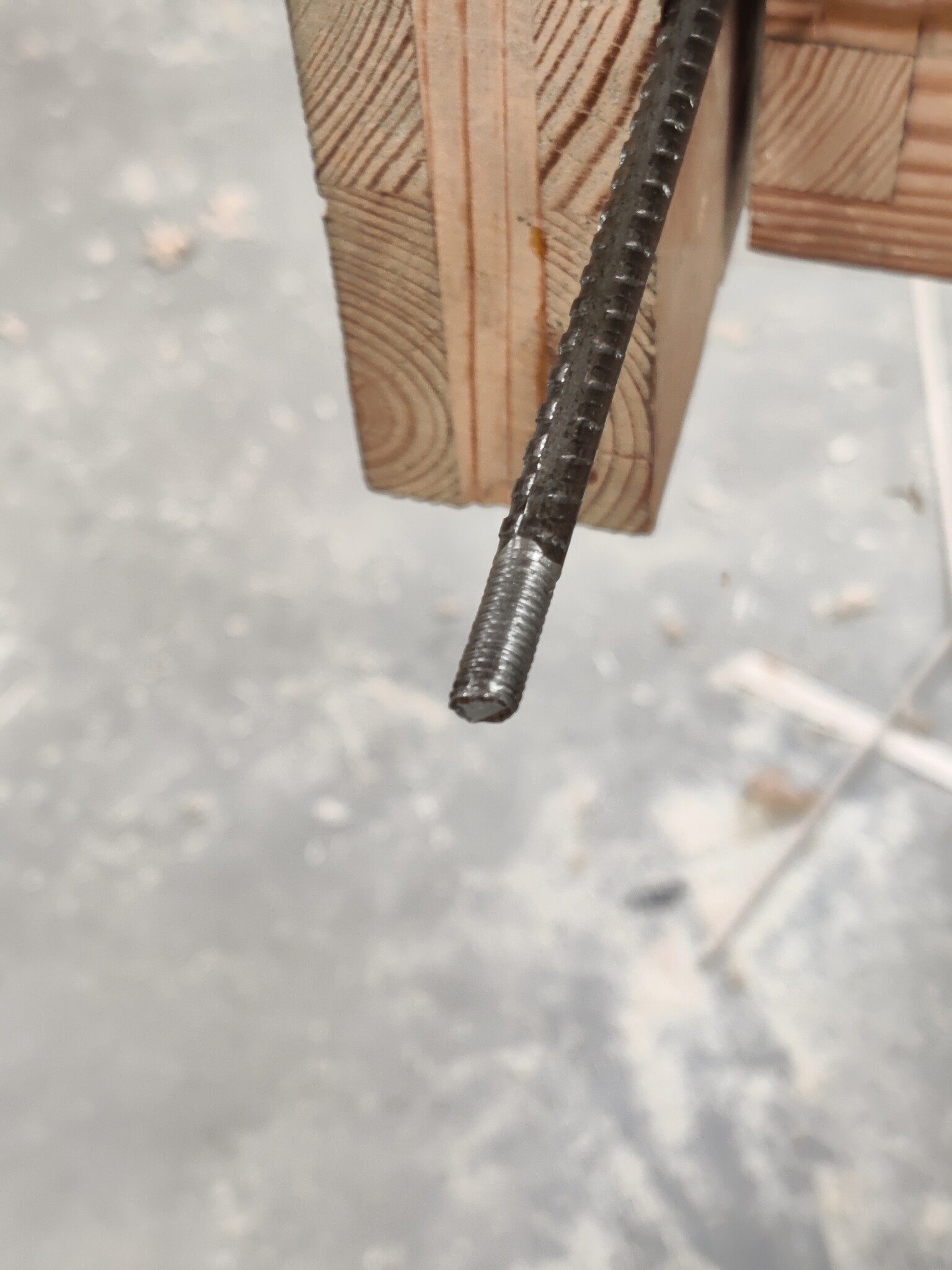 Så blev till att titta i garaget efter något annat, hittade två gånger två meter 6mm armeringsgärn. Gängade dem så att de kunde skruvas ihop med skarvmuff, samt en knopp i änden så att den inte skulle gräva ner sig i isoleringen:
