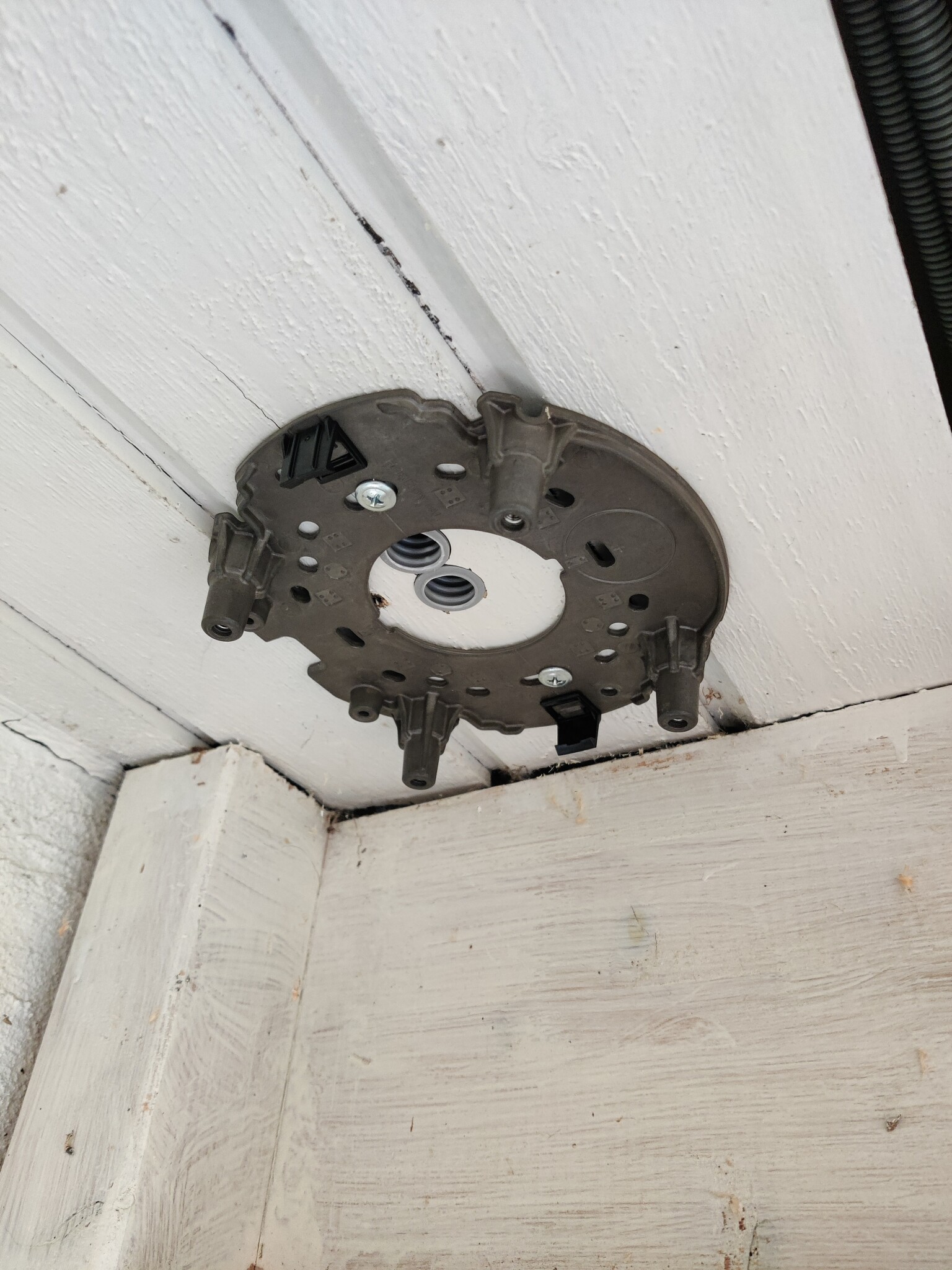 Något som borde tagit någon timme blev halvdagsprojekt... Kom över en ny övervakningskamera innan semestern för att kompletera där det fanns en död vinkel. Men den har blivit liggandes då det saknades framdragen nätverksladd. Platsen är takfoten precis bredvid uterummet där det redan sitter en kamera. Tyvärr går det inte att knö in ytterligare en kabel i det röret, så det blir till att dra nytt.