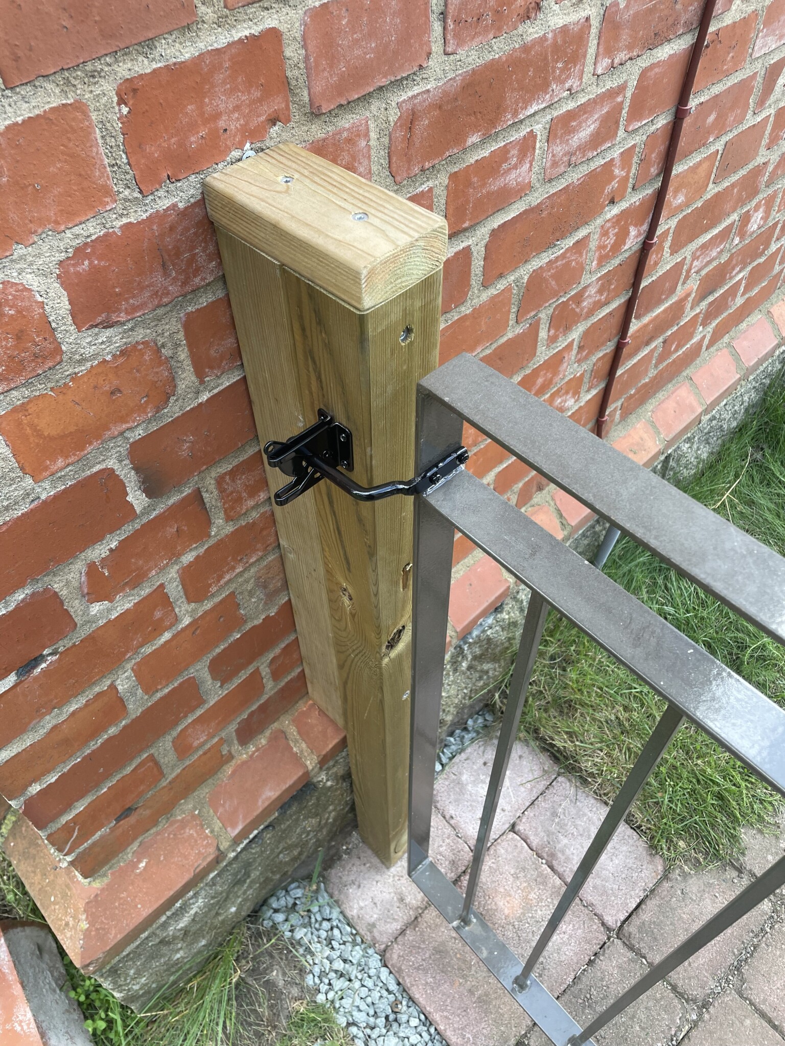 Fick även modifiera grindlåset då jag behövde vända fästplattan det ska monteras nu på morgonen när färgen torkat