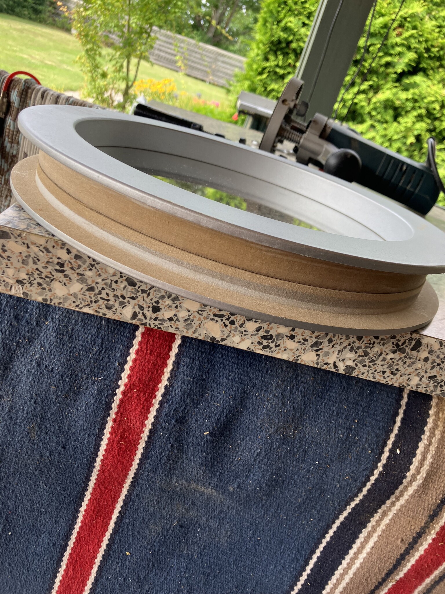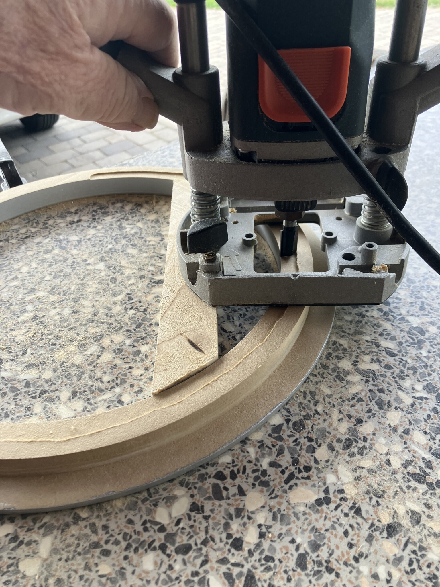 En liten list för fräsen att vila på och sen gick det hyfsat. Inte nödvändigt att det blev exakt som innan, bara så att glaset inte står och skallrar. Provmonterat.