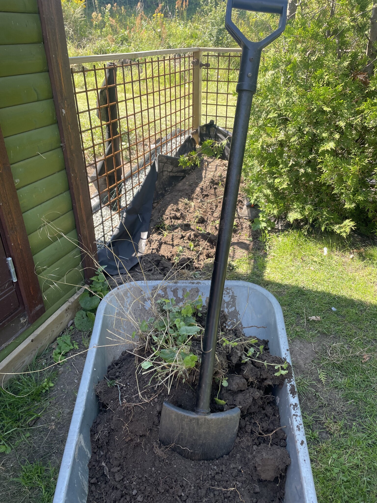 Fått ut ca 2 ton matjord i nya slänten, då upptäckte jag att mina 2kg gräsfrö bara var 1kg, således tog det slut.
