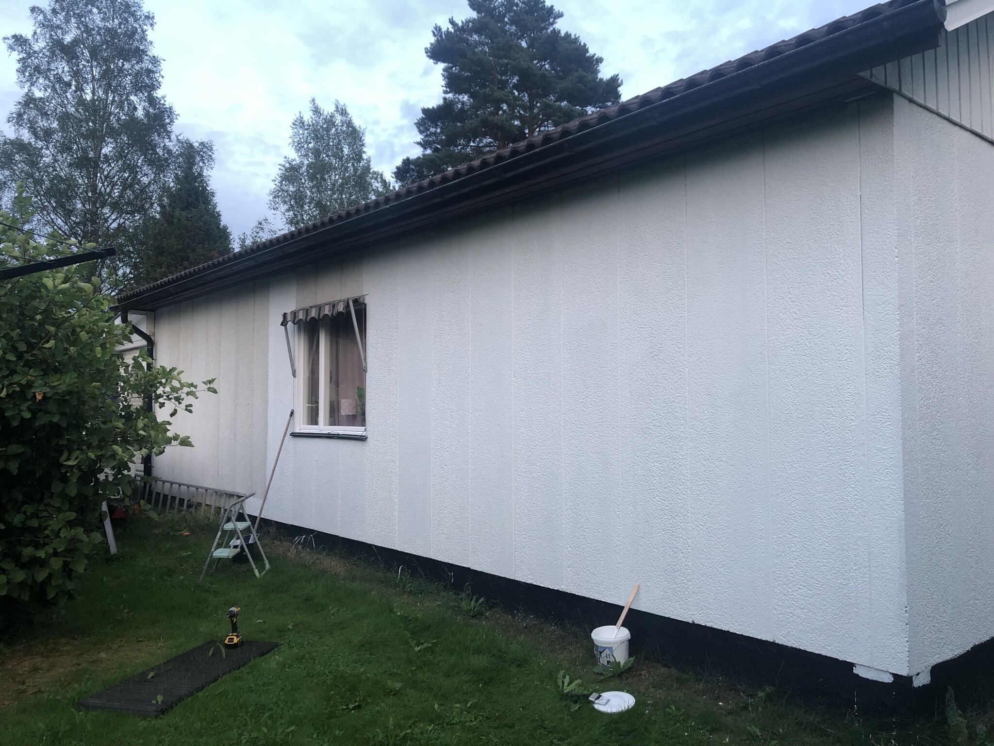 Fortsatt att måla fasaden på huset. Mycket jobb bara med foder brädorna på två sidor som jag tagit idag. Det går nog snabbare när jag skall måla själva fasaden på 1,5 sidor nästa helg.