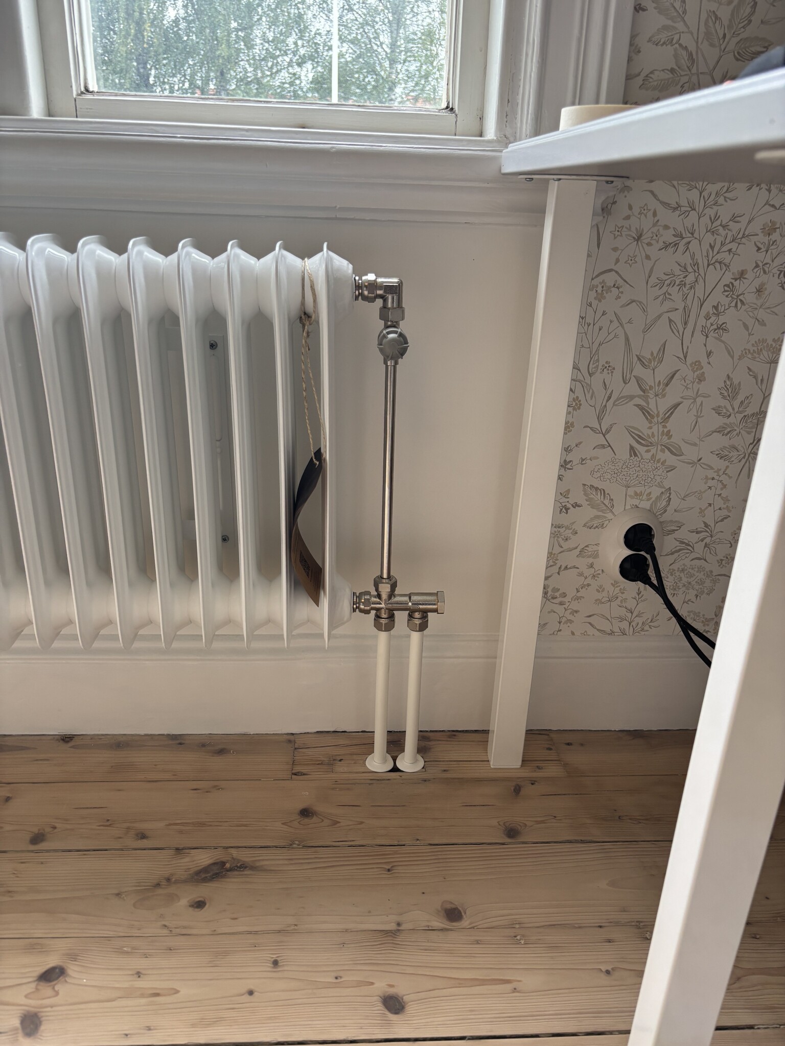 Blev totalt 2 radiatorer i källaren och matningen till 3 radiatorer på översta våningen.