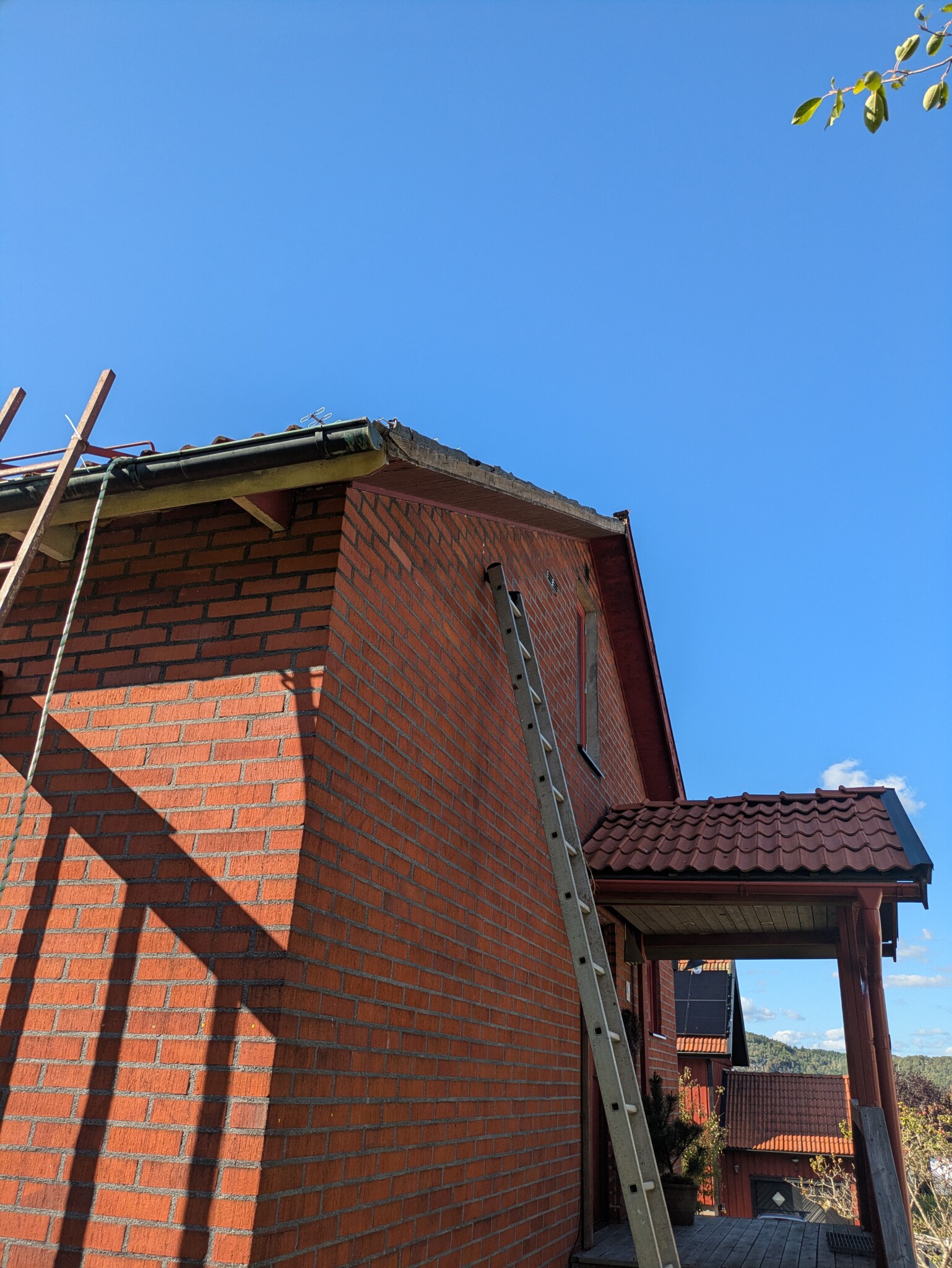 Tagit ner vindskiva för målning. Förra året målade jag andra sidan från stege men funkar inte på denna sidan