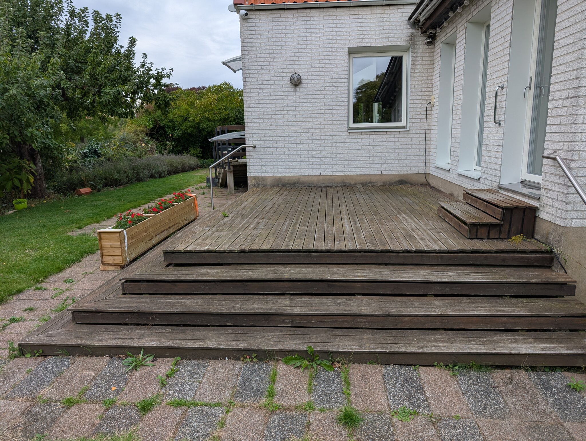 Är igång och skruvar upp lite solcellsbelysning på altandäcket. Sen blev det att bygga en custom tv bänk åt mamma också. Hon ville ha något som är tillräckligt högt för att titta från sängen, hade lite 45x195 liggandes så kapade till bitar och drog ihop.