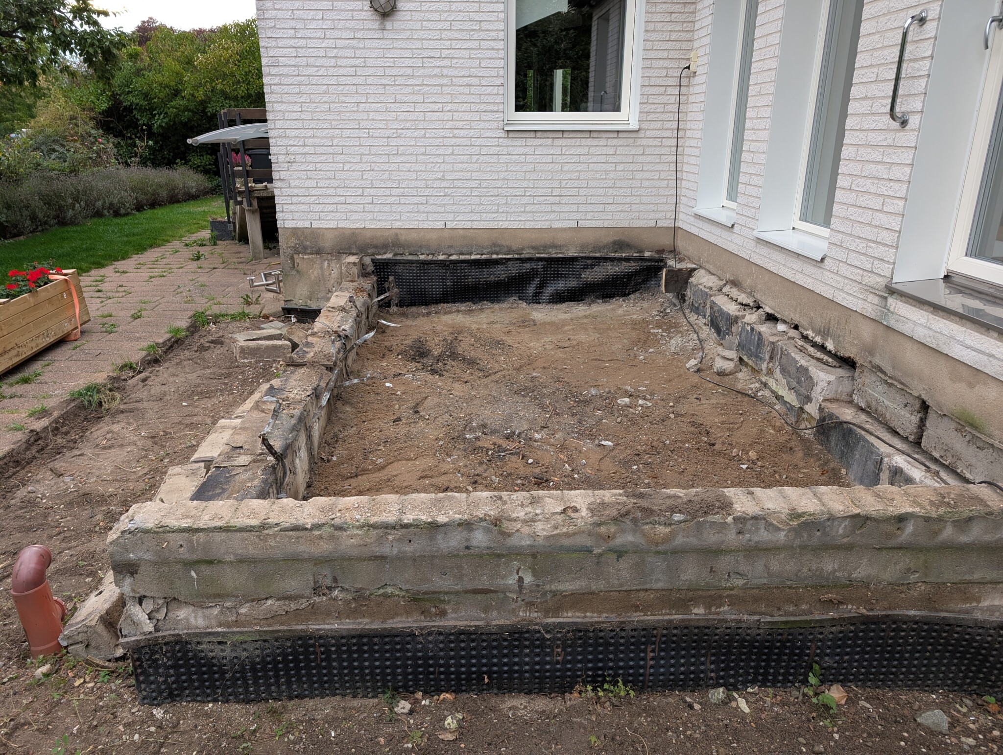 Skulle bara kratta ut lite ny täckbark vid häcken, men jag tycks ha hittat tomtmarkören vi inte sett tidigare. Vi har trott att gränsen går precis vid det lilla förrådet och att taket till och med är över, men så verkar ju inte vara fallet dåSpelar ingen roll för vår del men det är väl trevligt att veta. Om den nu inte blivit flyttad av nån någon gång.