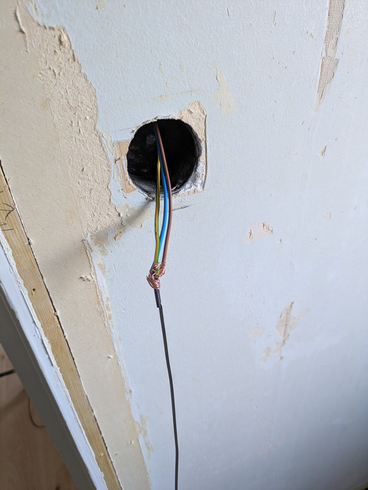 Trådat om ett uttag, började rycka lite men inget rörde sig i ändarna. Letade runt lite och hittade en dosa på det absolut sämsta stället inne i hörnet av en garderob