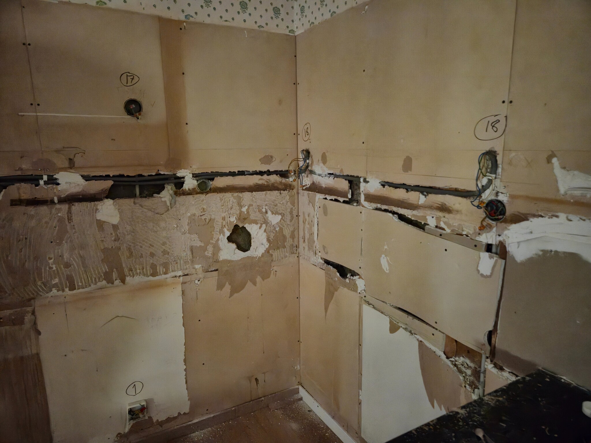Rev ett kök. Väggarna är i aningen sämre skick än förväntat...