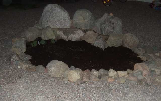 Fixat en liten stensättning i två nivåer, fyllt med skräpjord som grävaren lämnade efter sig, toppat med trädgårdsjord. Satt lite växter och sått lite frön.