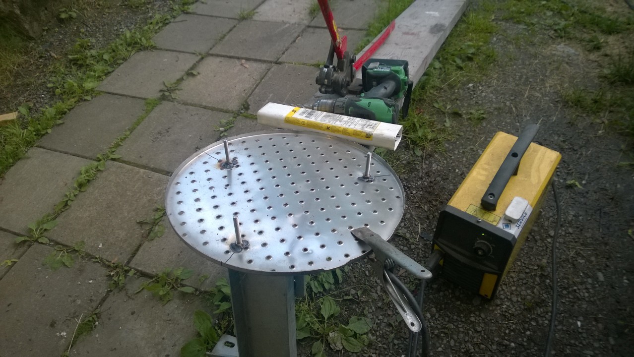 Hem och kapade bort en cm på kanten så var det perfekt i höjd, svetsade dit 3 stödben för extra bärighet och att den ska hålla sig kvar.